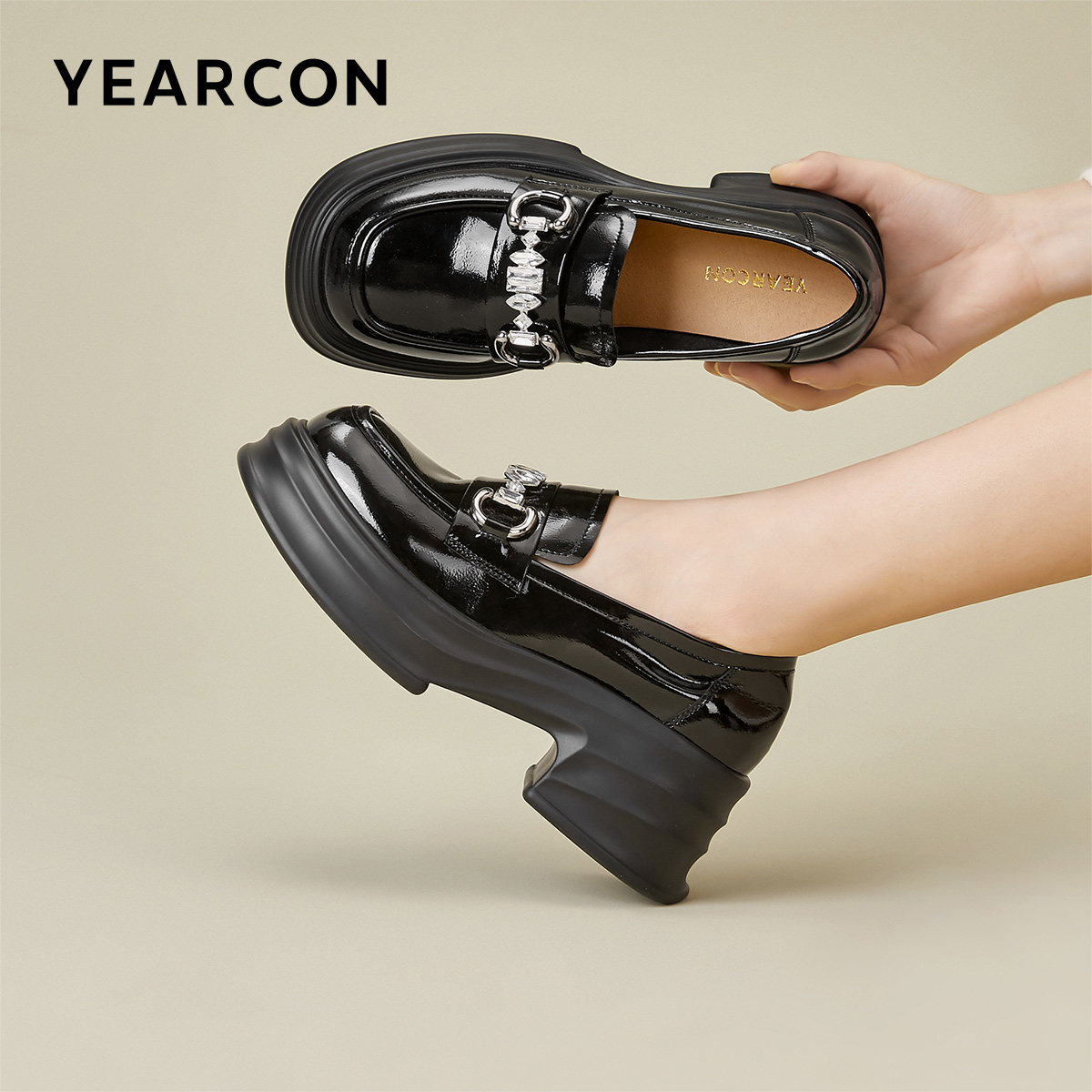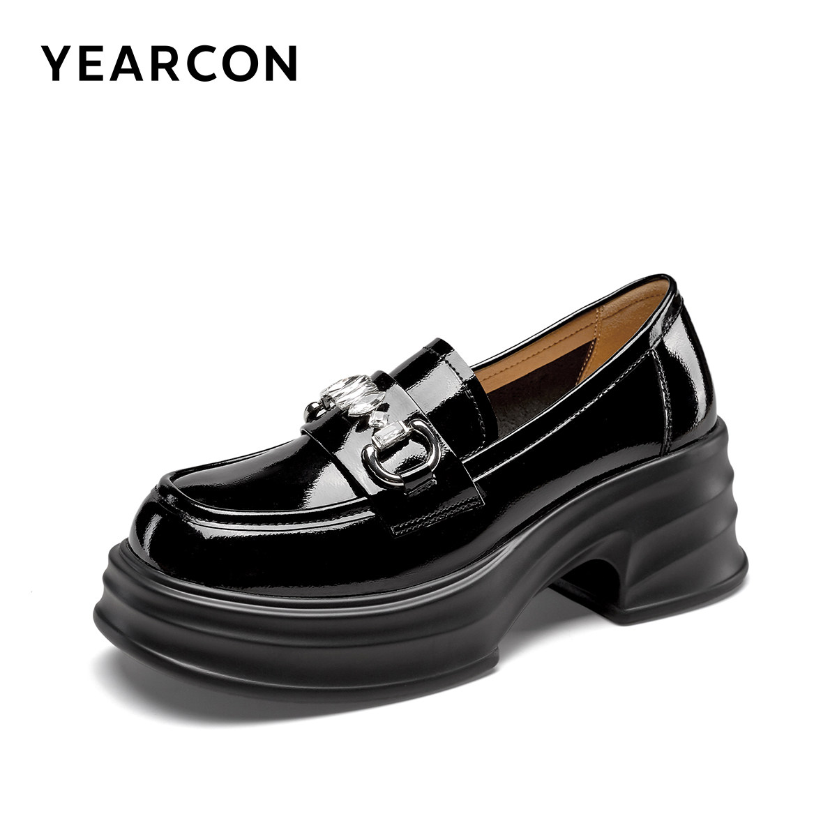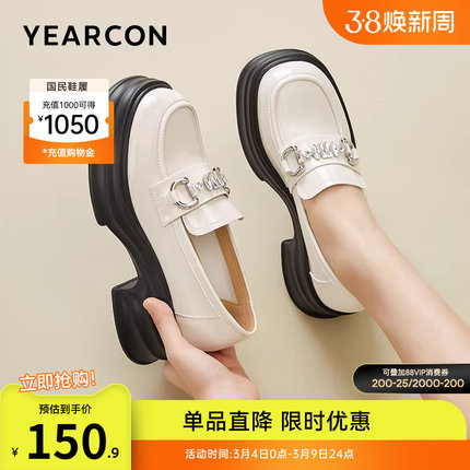 意尔康女鞋春秋季女士厚底英伦风小皮鞋休闲乐福鞋高跟单鞋