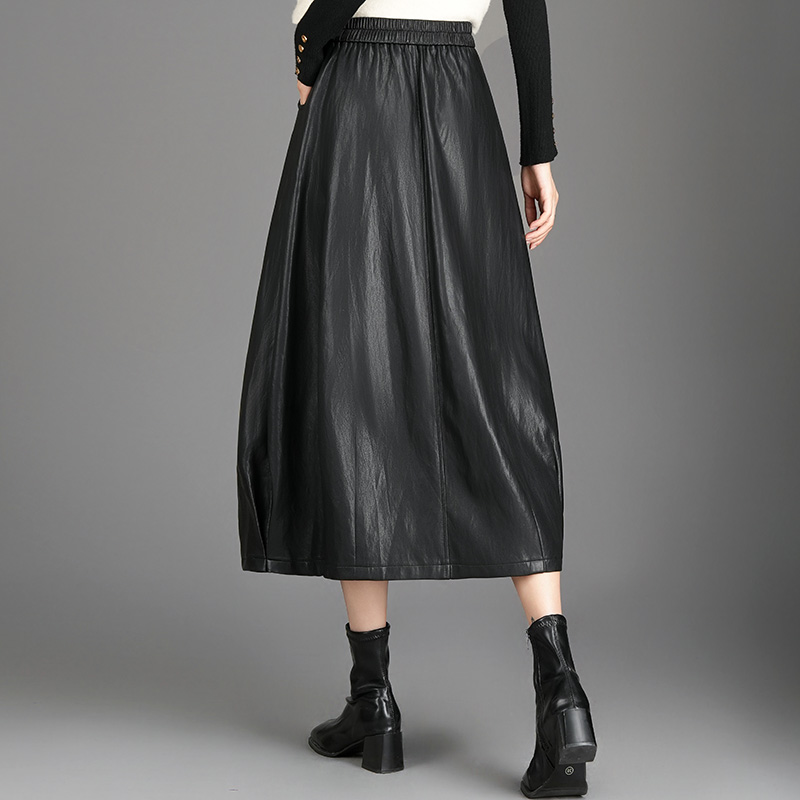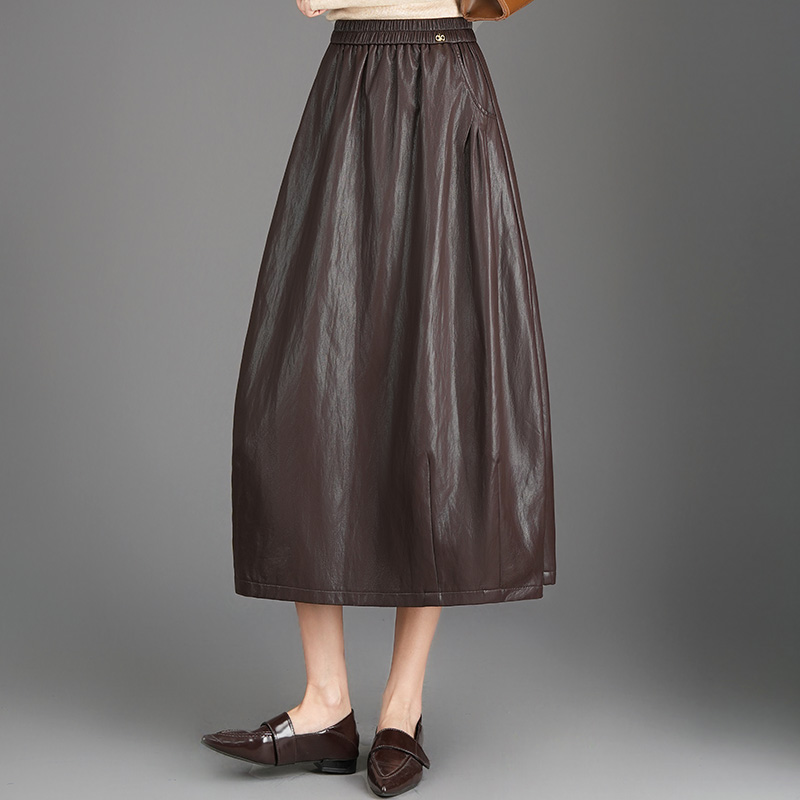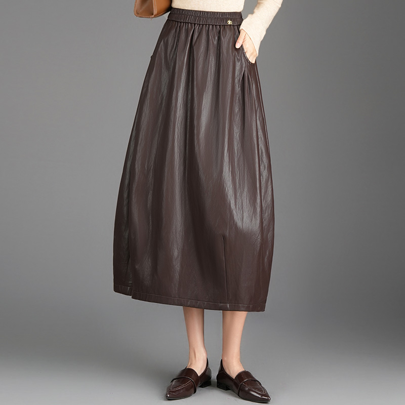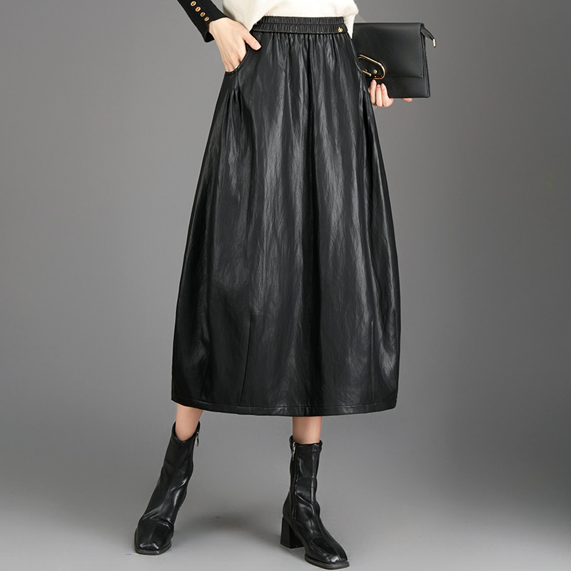 pu皮花苞裙子半身裙女秋冬2025年新款高腰显瘦中长款时尚气质皮裙