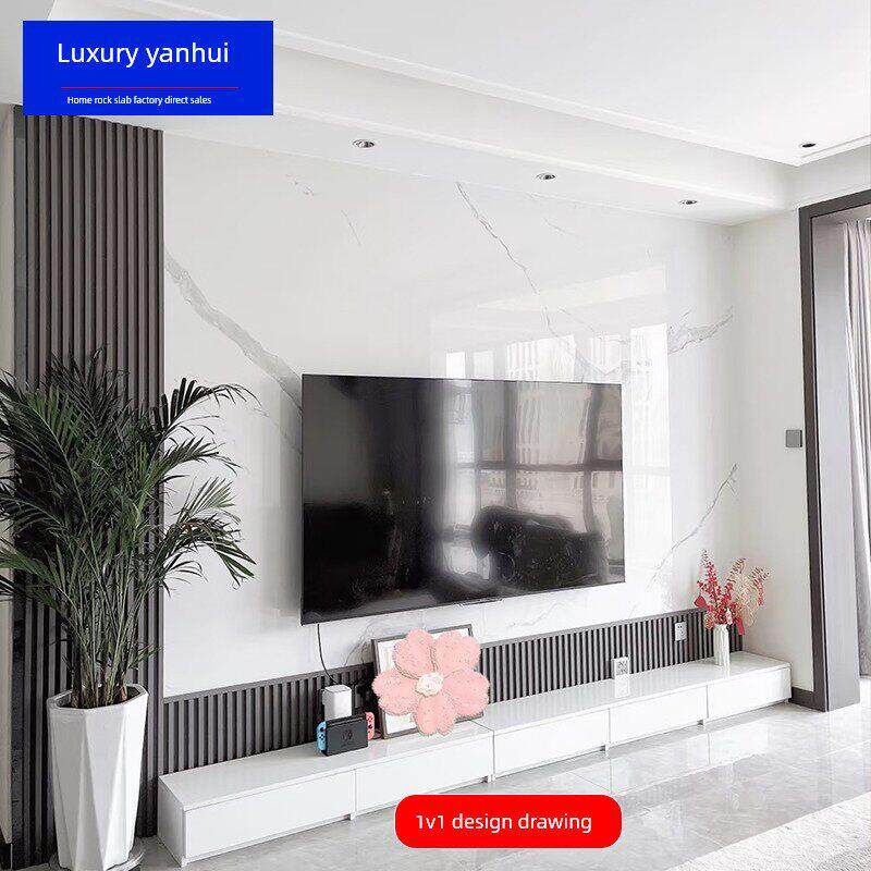 石板电视背景墙现代简单瓷砖无障碍豪华大理石客厅装修2025新电影