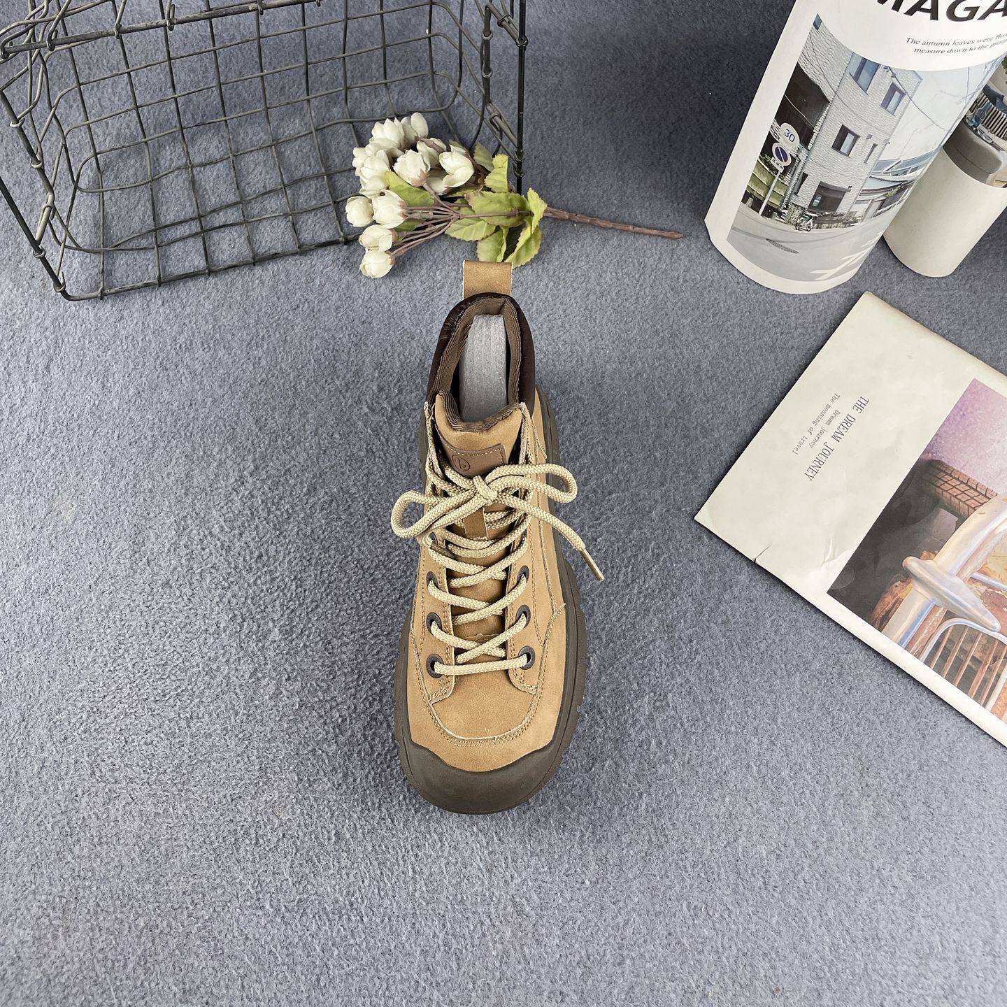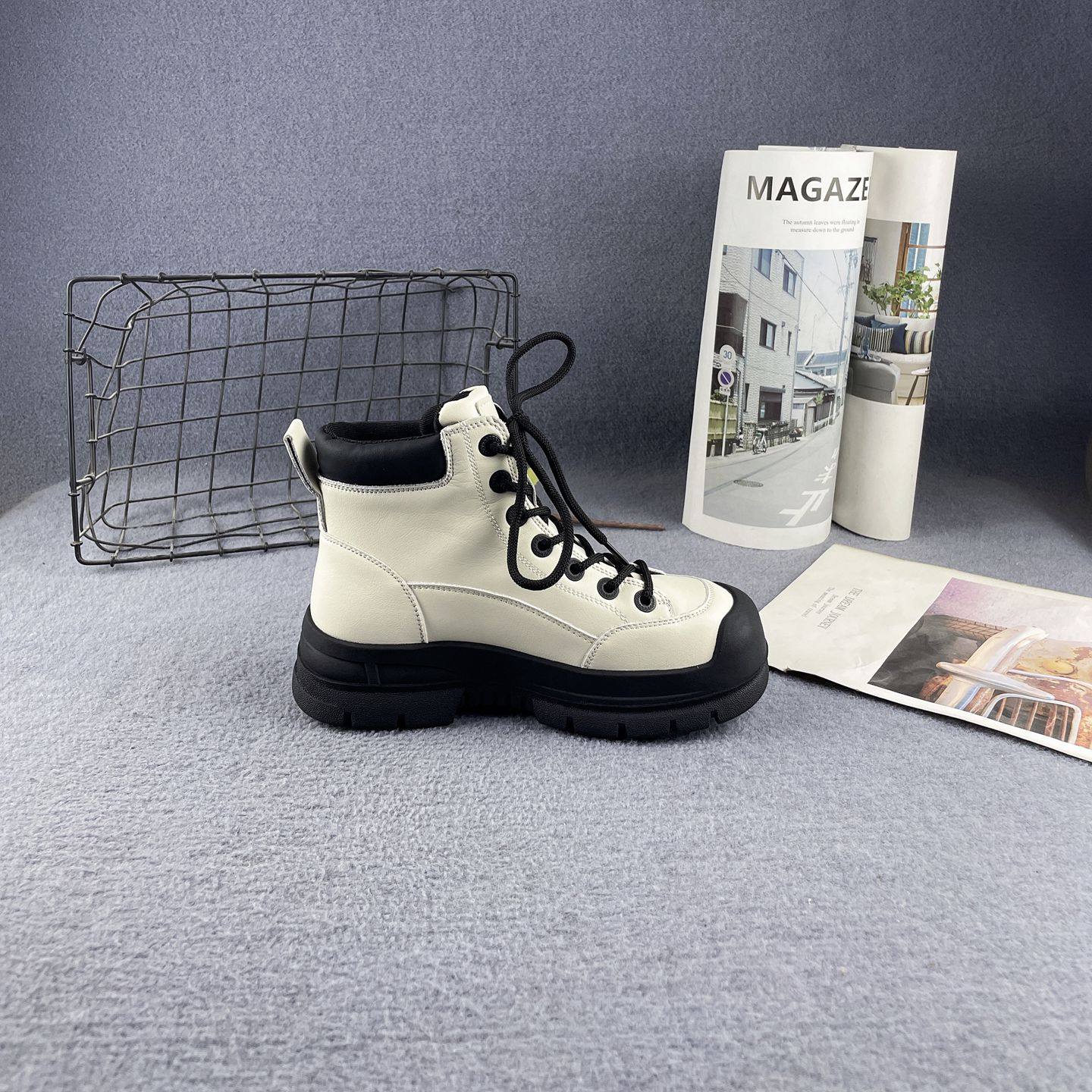 牛皮防滑厚底系带马丁靴高帮鞋女