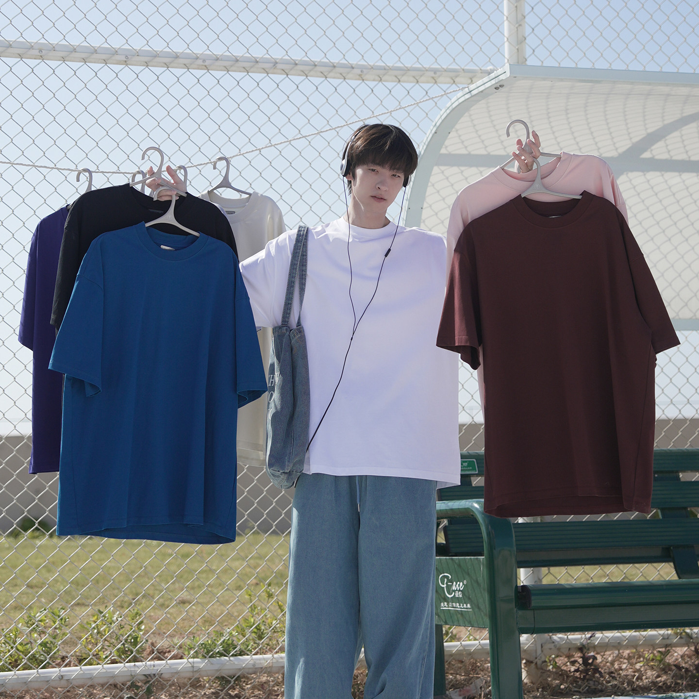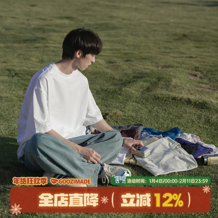 GOOZI MADE 白色短袖t恤男女夏季重磅日系男生打底半袖上衣男款潮