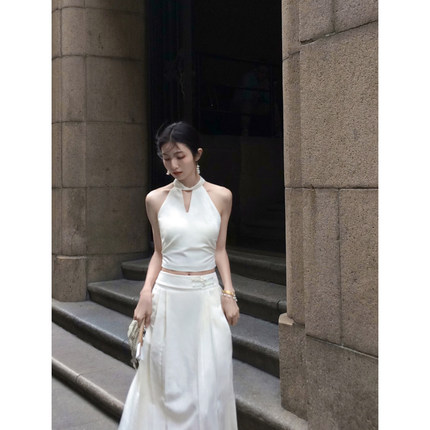 MULVAN【现货7折】白山茶 新中式国风提花无袖背心马面裙套装
