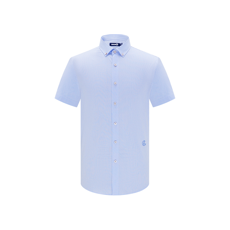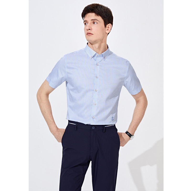 【免烫易打理】Navigare意大利小帆船蓝色衬衫男短袖纯棉格子衬衣