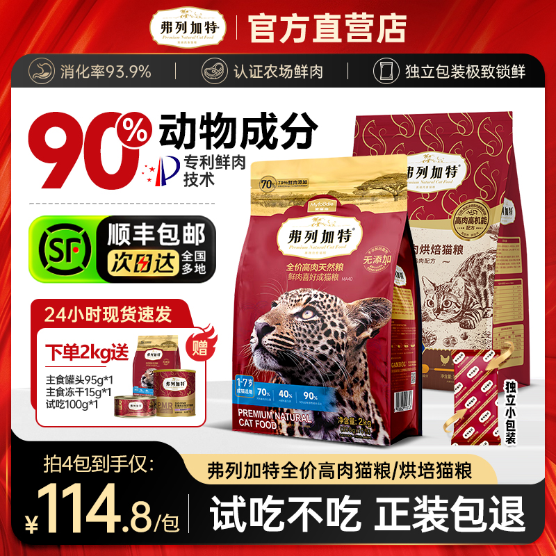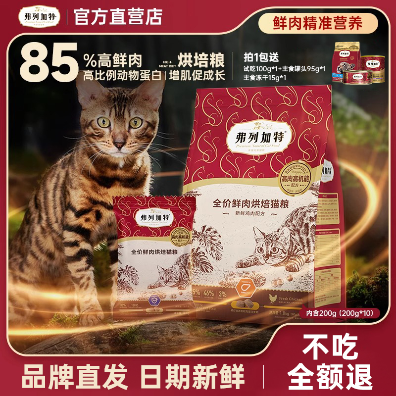 弗列加特猫粮无谷成幼猫老猫鲜肉乳鸽鸡肉天然美毛磷虾油低温烘焙