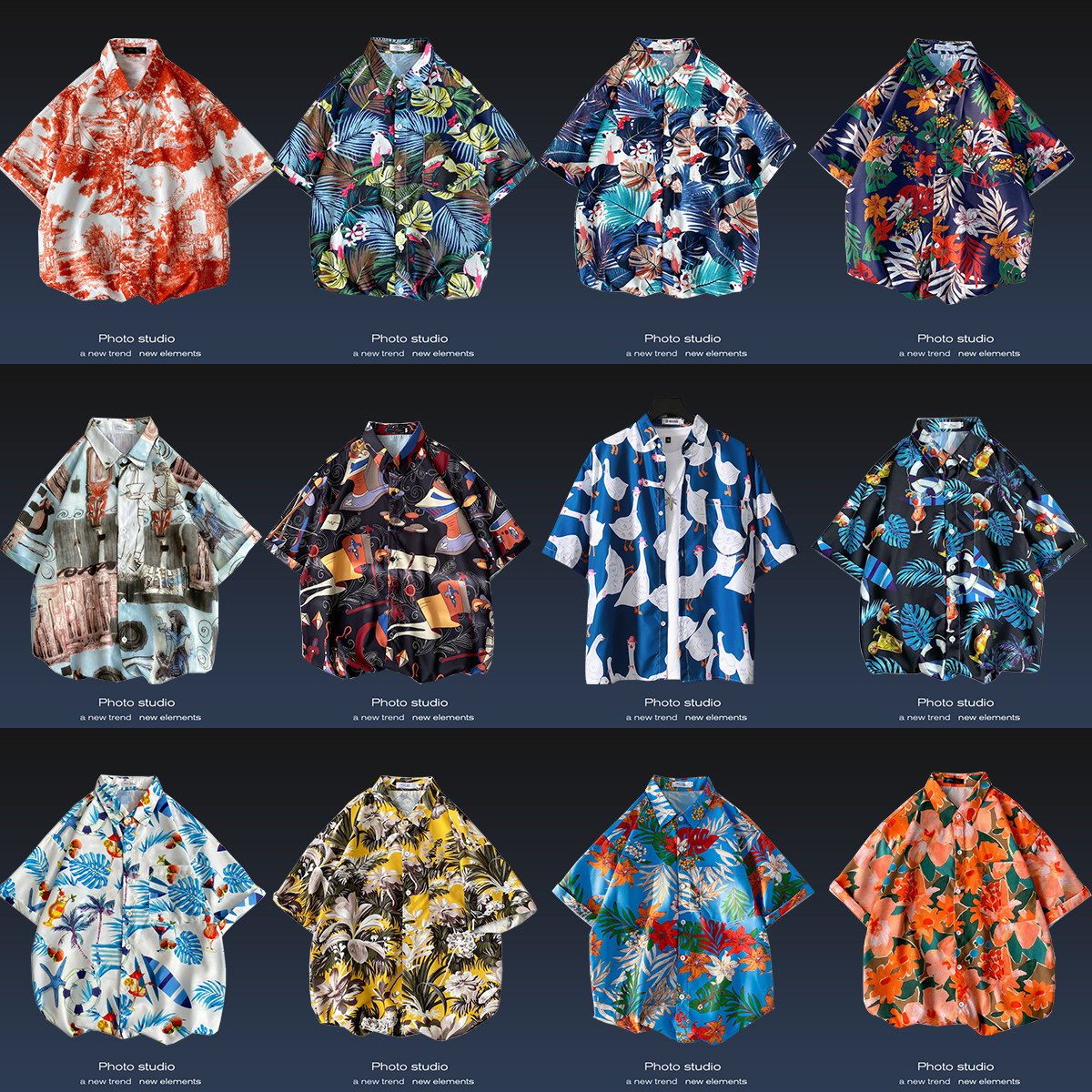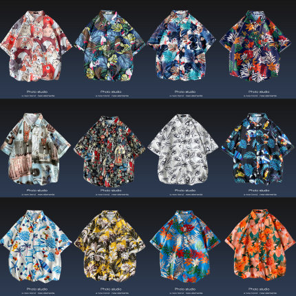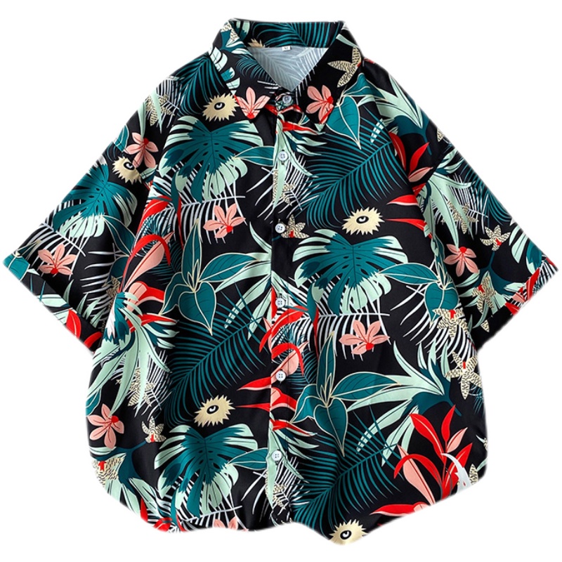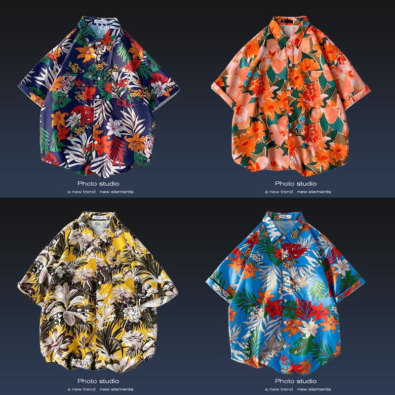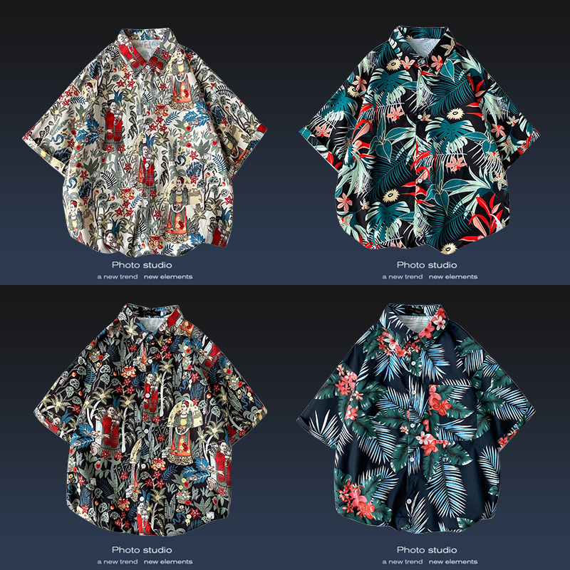 短袖衬衫男日系港风ins休闲痞帅花衬衣韩版潮流2021夏季薄款外套