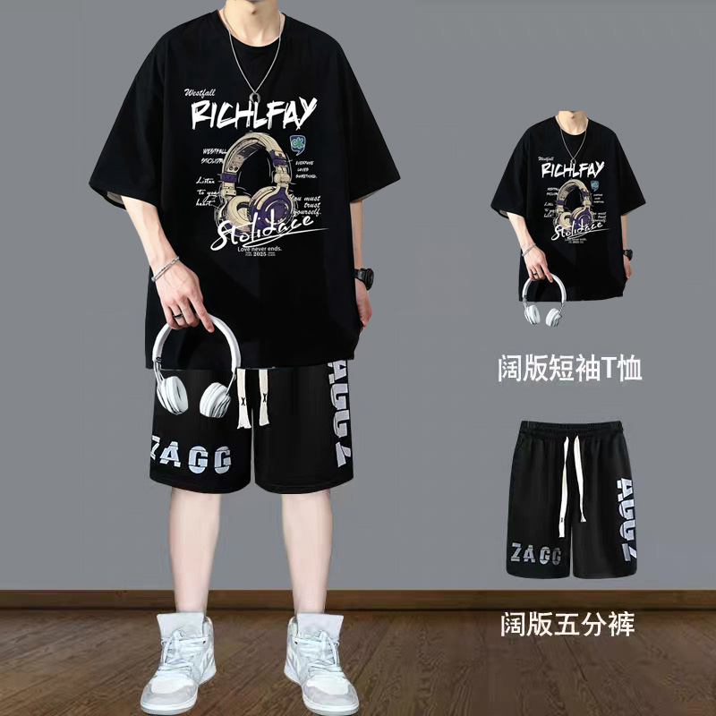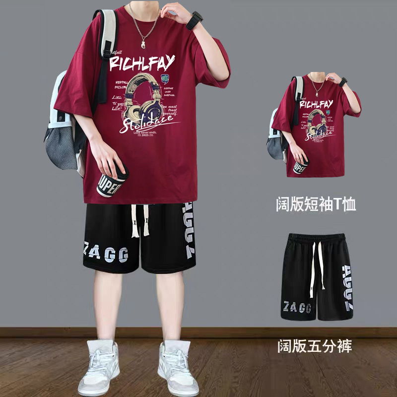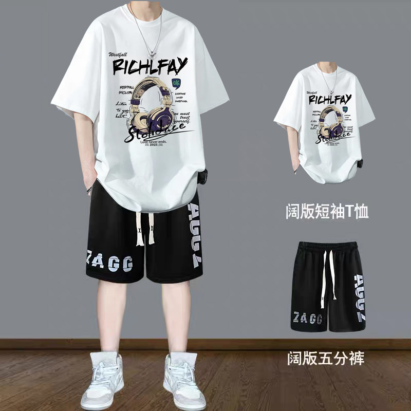 纯棉t恤青少年夏季宽松休闲运动套装短袖短裤初高中男生帅气一套
