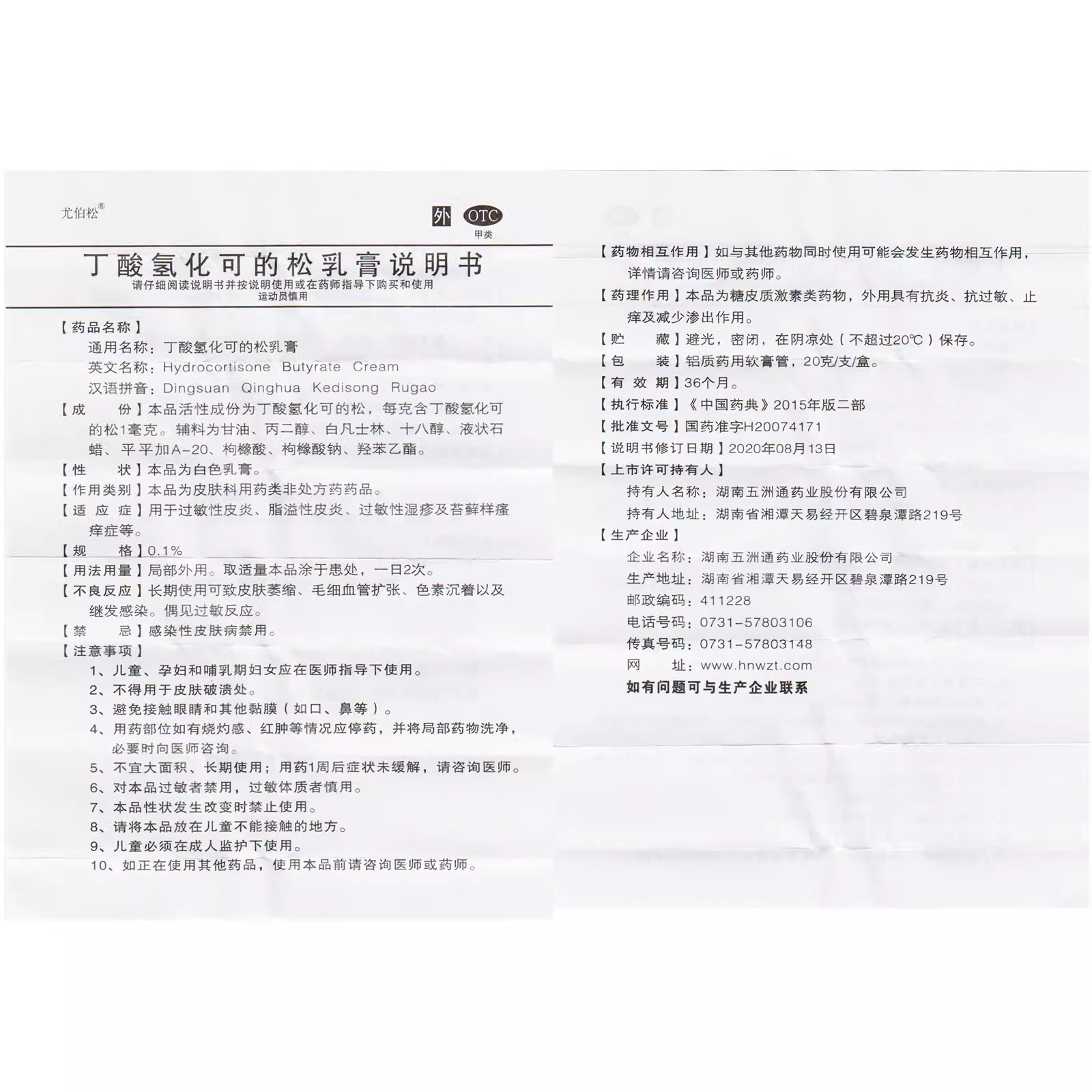 包邮】尤伯松 丁酸氢化可的松乳膏10g*1支 过敏性皮炎 过敏性湿疹