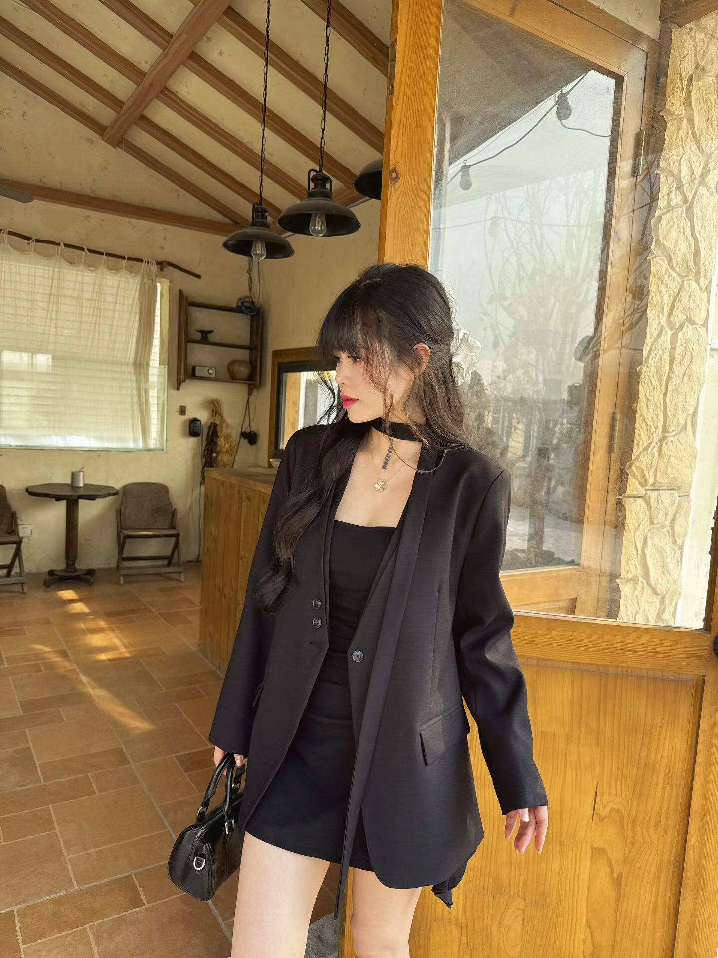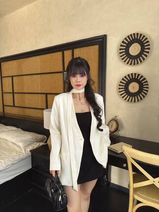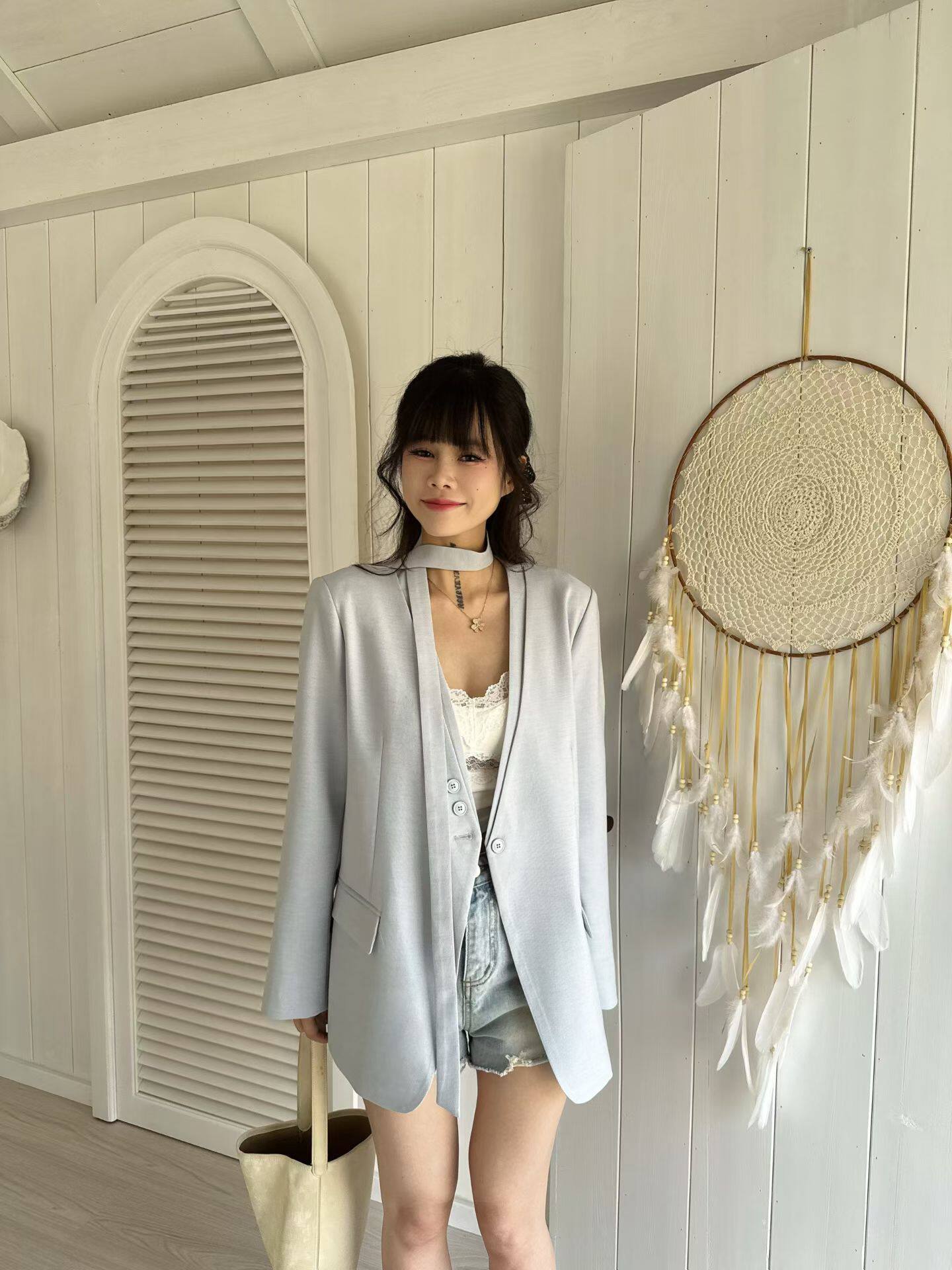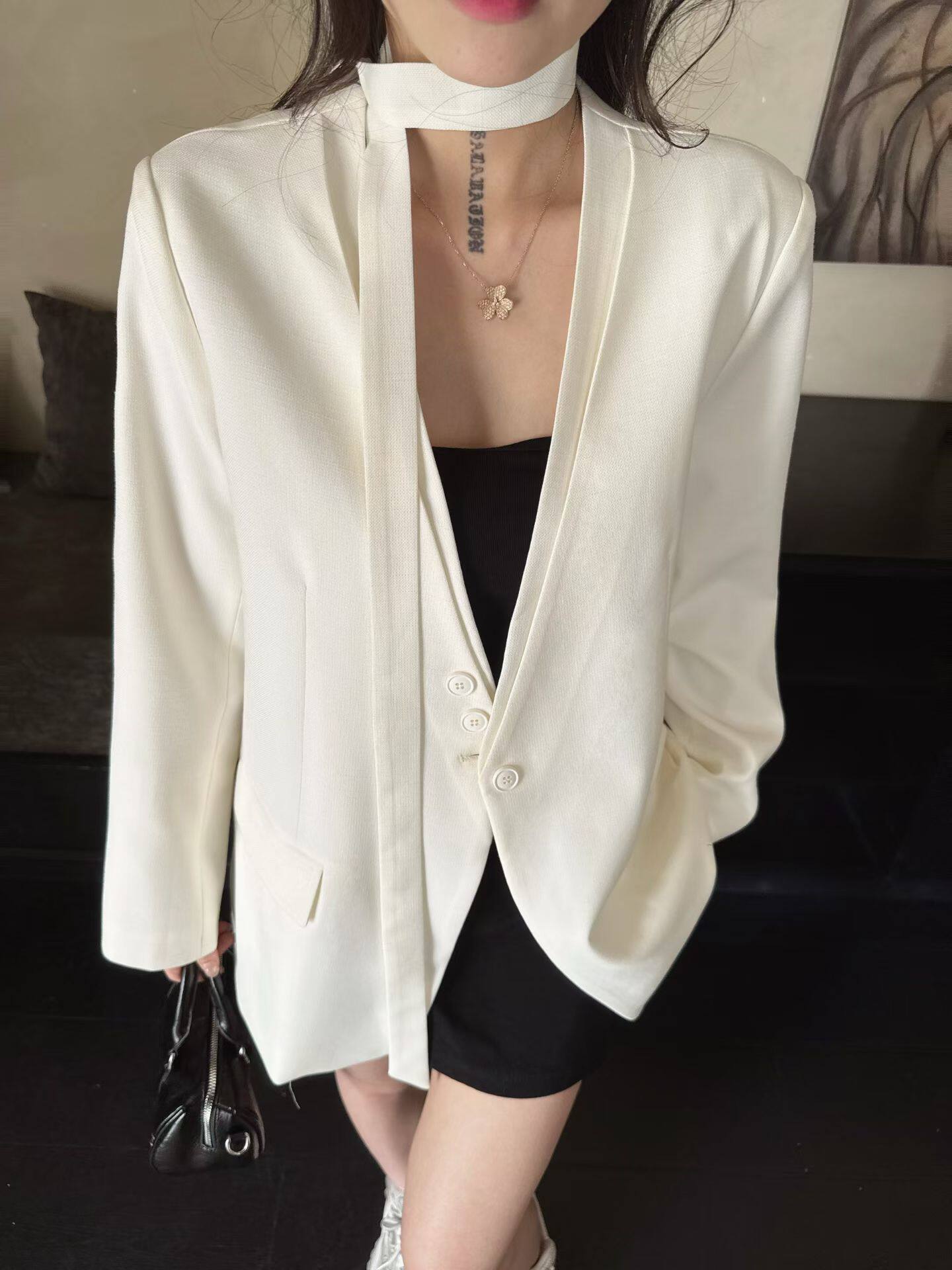 2026春秋款新品韩版气质款女显瘦设计感V领双层领小众西装小外套
