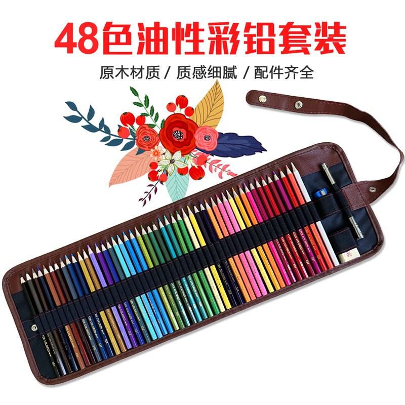 水溶性彩色铅笔48色油性彩色铅笔专业G手绘学生美术画画绘画笔帘