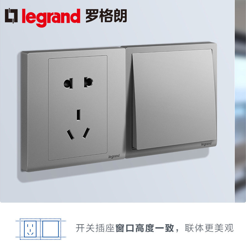 TCL罗格朗灰色开关插座官方旗舰店朗淳usb五孔单控双控16A空调插