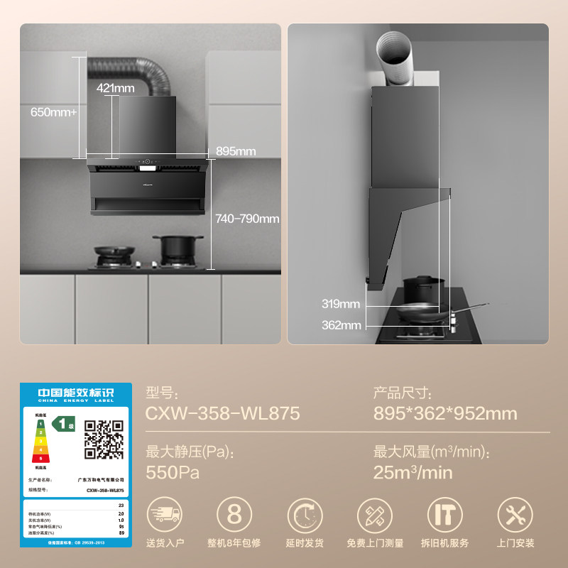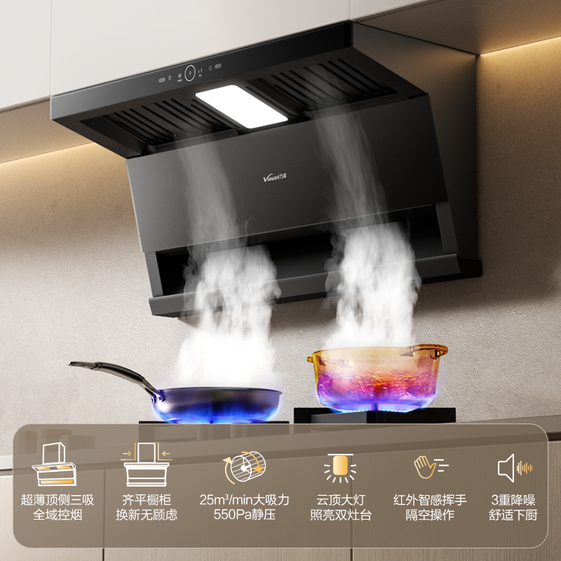 [品牌补贴]万和顶侧三吸抽油烟机家用厨房大吸力烟机WL875