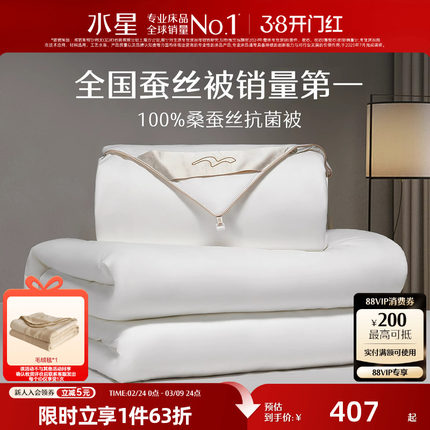 水星家纺桑蚕丝被全棉结婚庆喜被四季春秋被子母被芯冬被二合一被