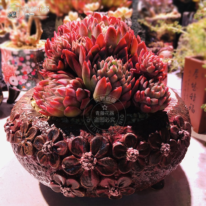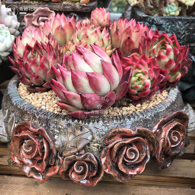 青藤花器韩式多肉花盆器群生大口径花G盆粗陶白菊仙女杯盆肉肉绿
