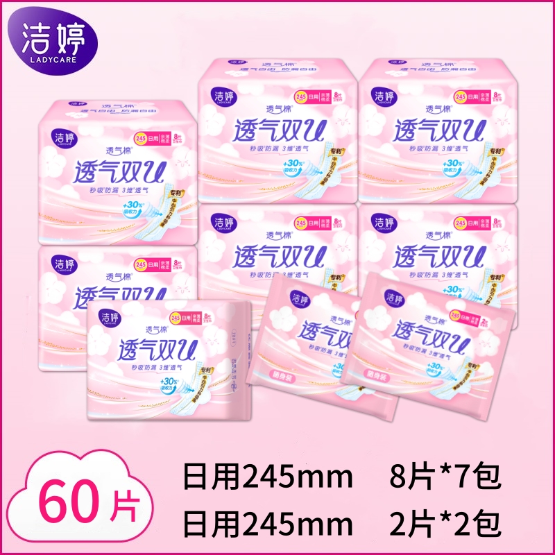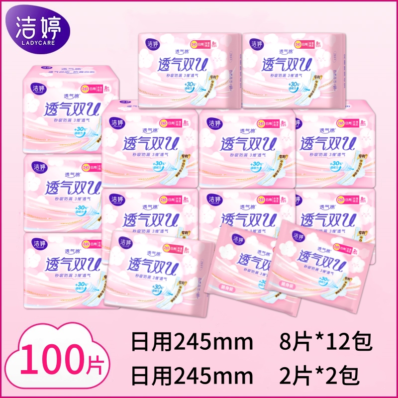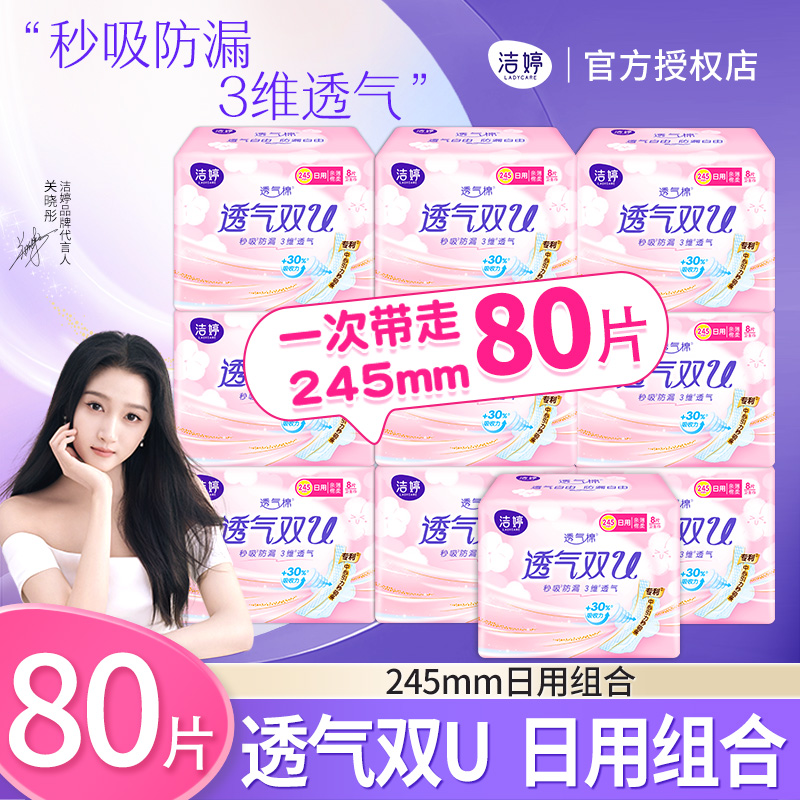 洁婷卫生巾日用组合装245mm姨妈巾棉柔双U透气亲肤舒爽正品批发