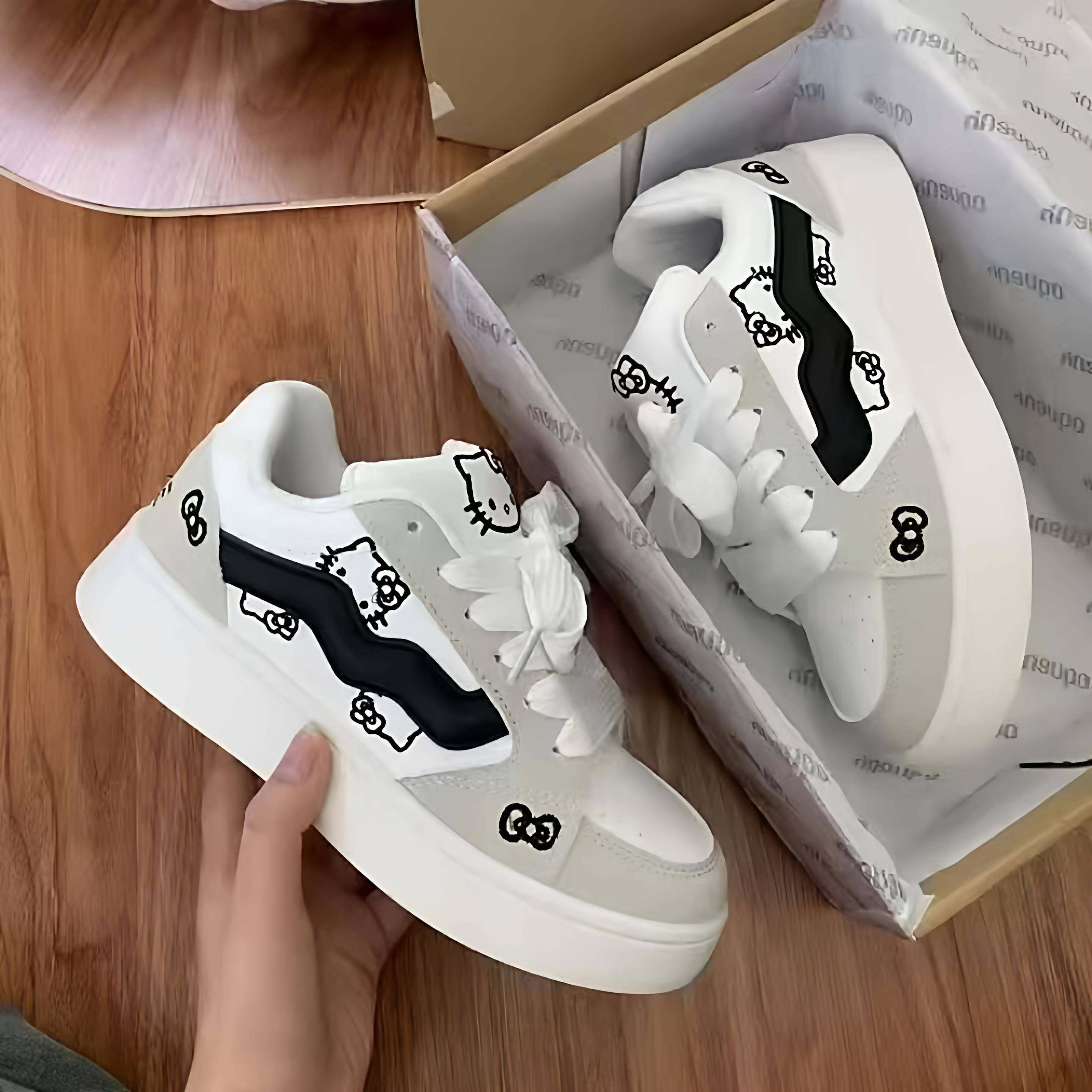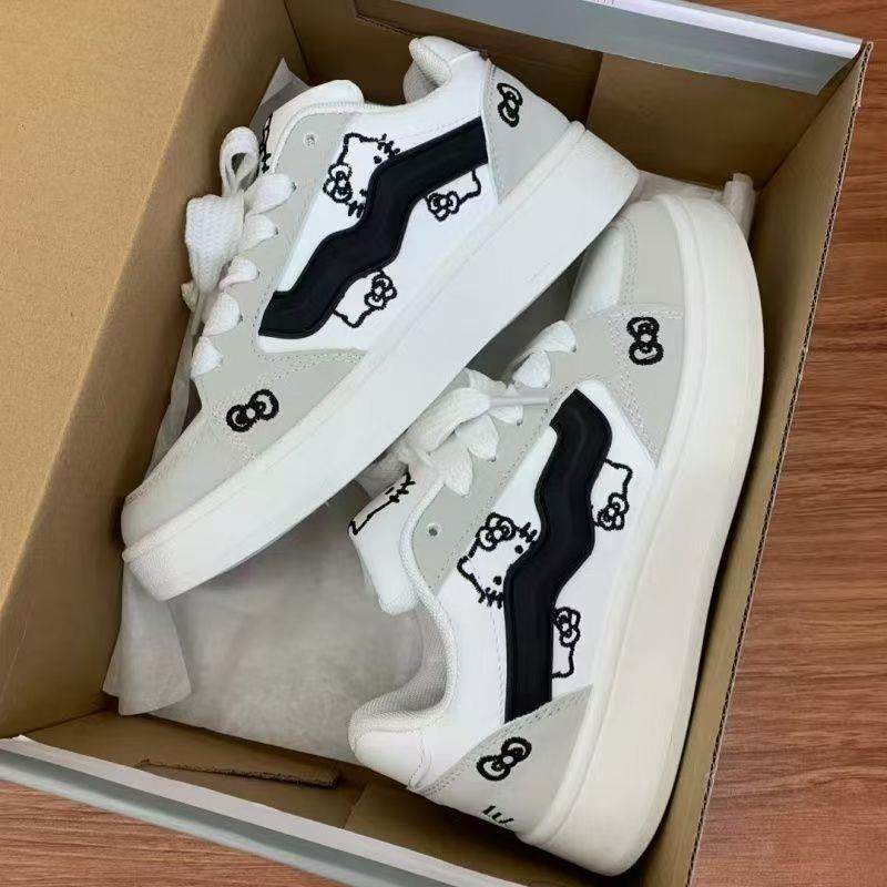 萌系灰黑色可爱kitty猫面包鞋女ins厚底有擦声板鞋舒适百搭运动鞋
