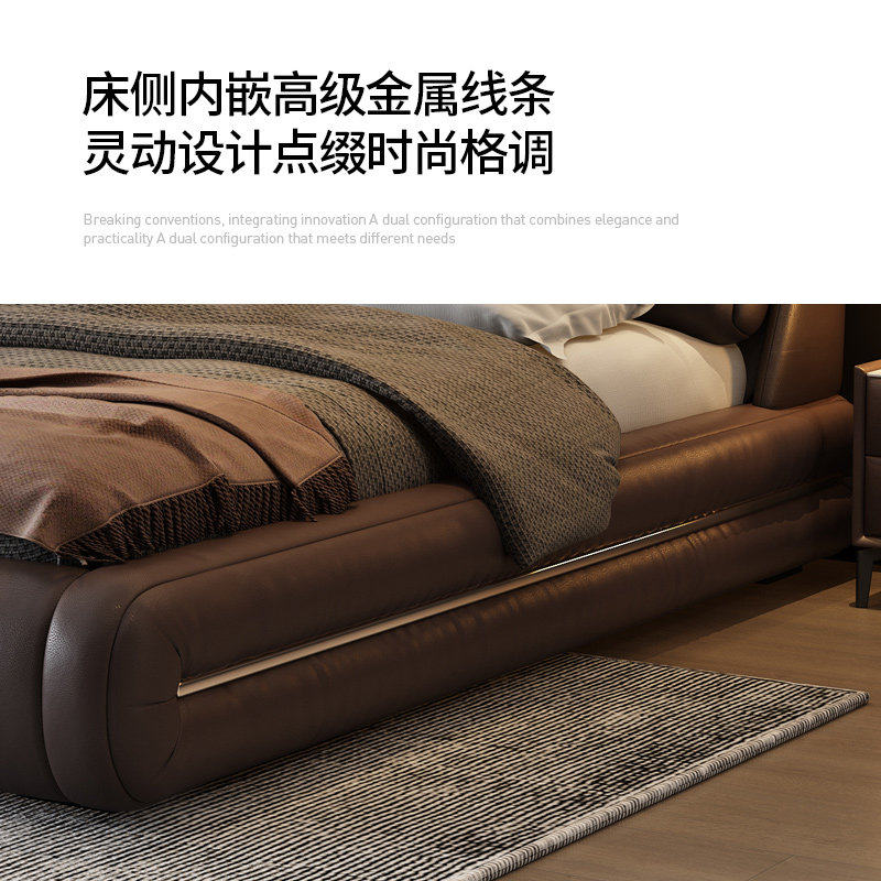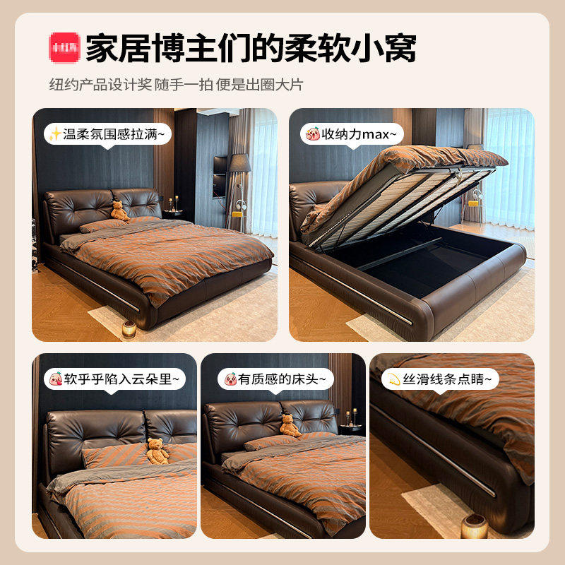 意式极简真皮床主卧室轻奢现代软包婚床新款高箱收纳储物双人大床