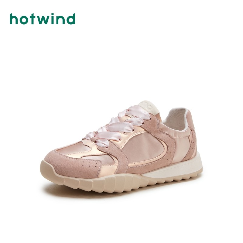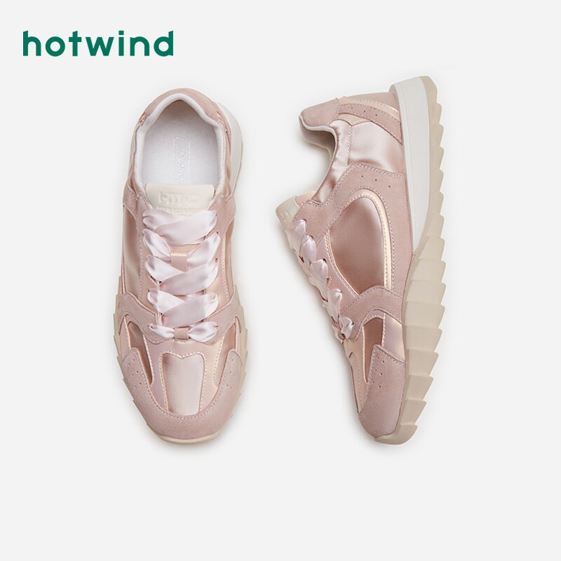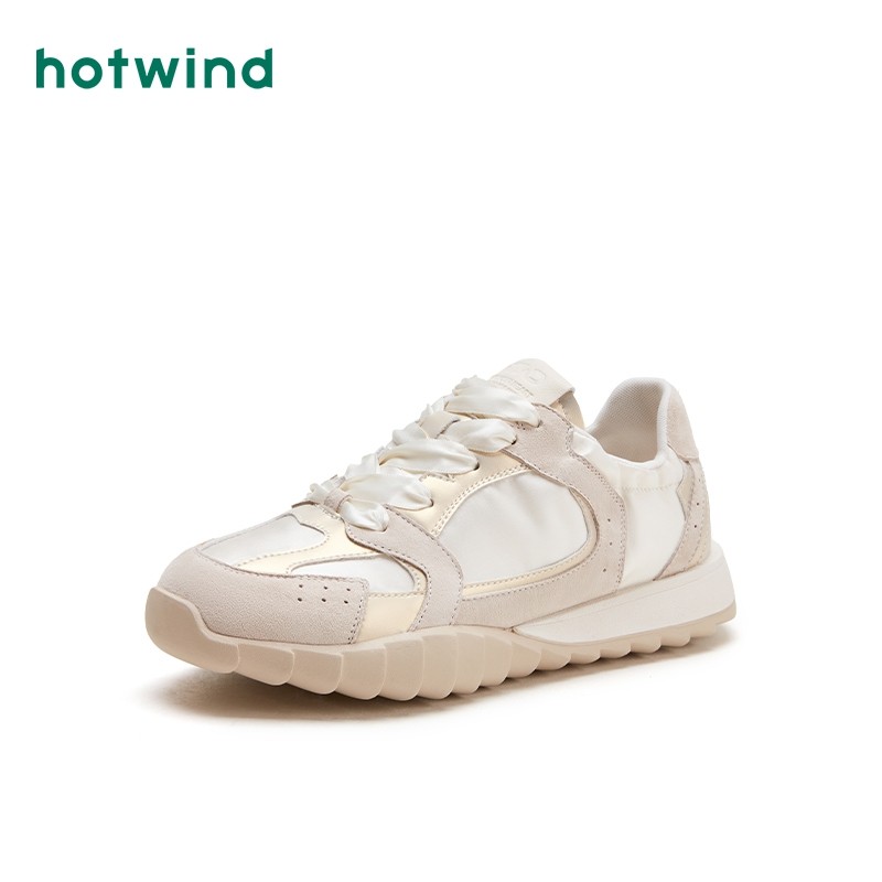 热风2024年秋季新款女士潮流运动休闲鞋圆头厚底阿甘鞋复古德训鞋