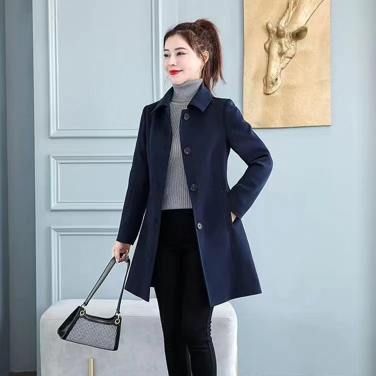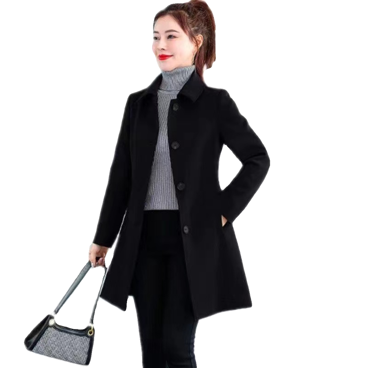 毛呢外套女矮小个子2025新款中长款收腰显瘦黑色爆款羊绒呢子大衣