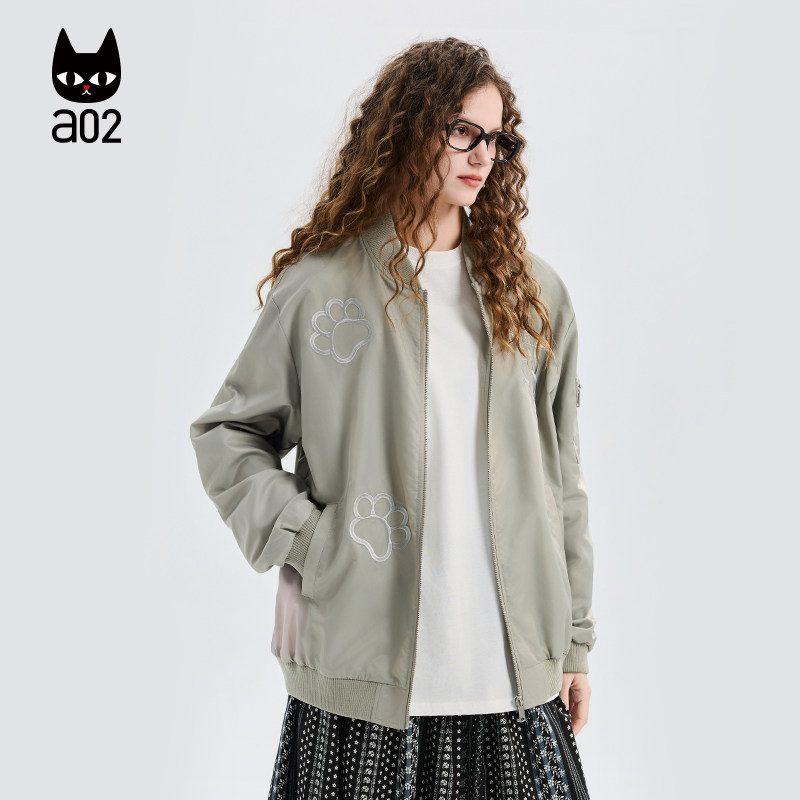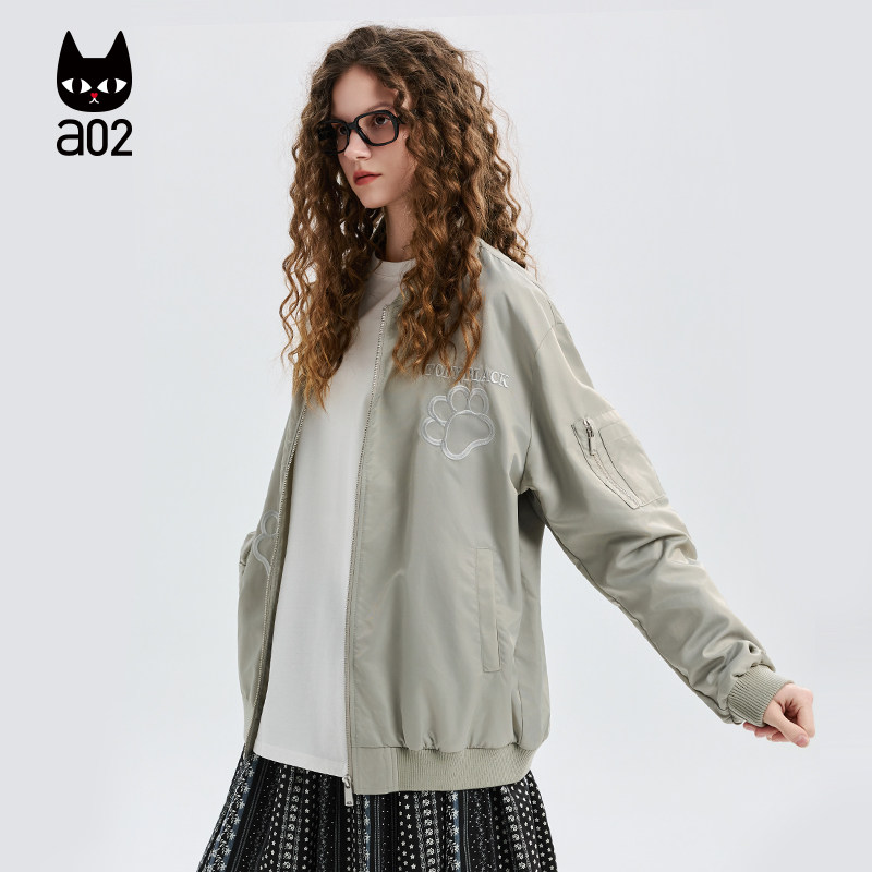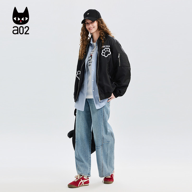 a02黑猫系列绣花梭织耐磨防风棒球服外套女2026新款春季休闲上衣