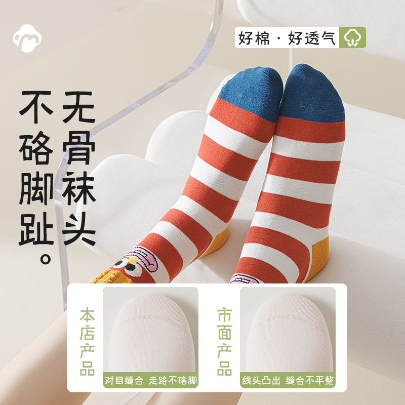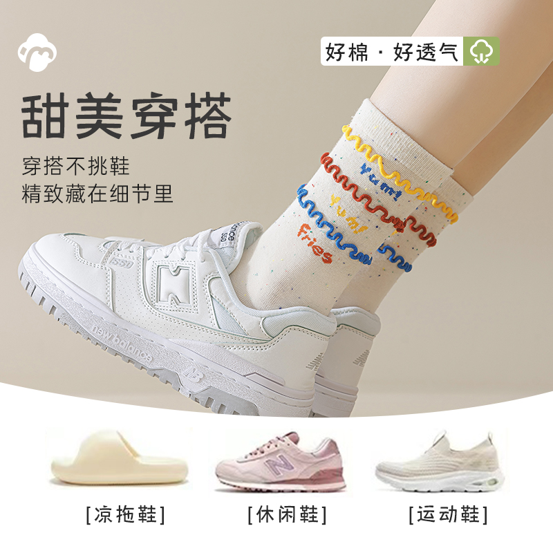 薯条袜子女夏季薄款中筒袜纯棉丑萌ins潮卡通可爱春秋日系长筒袜