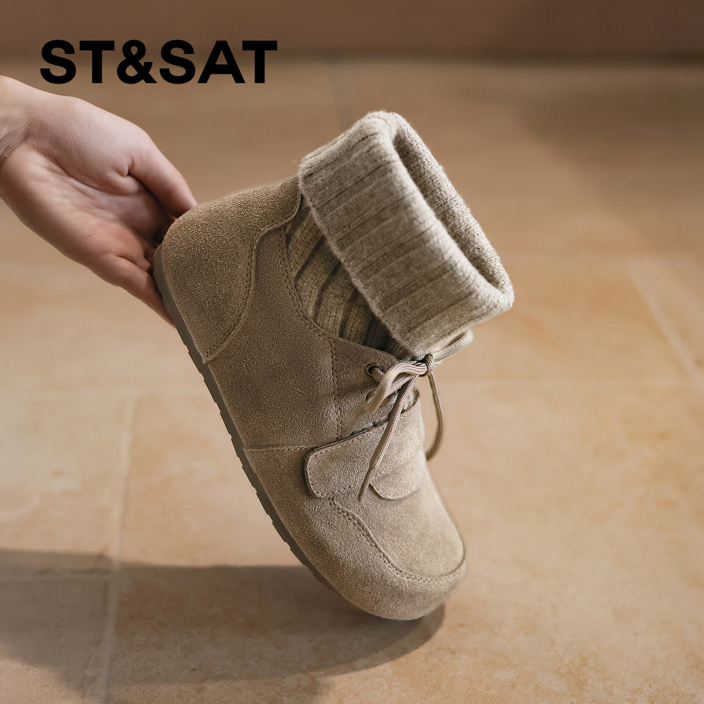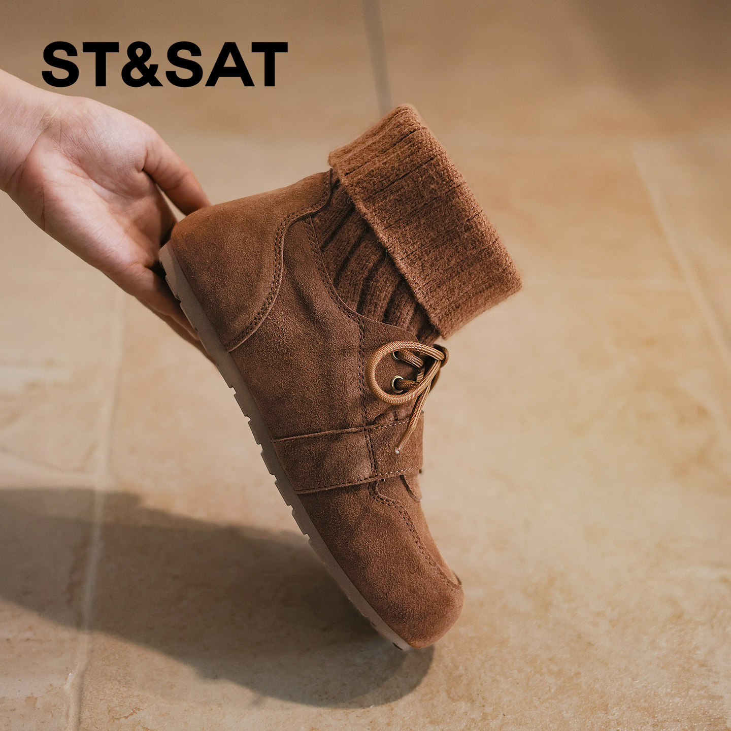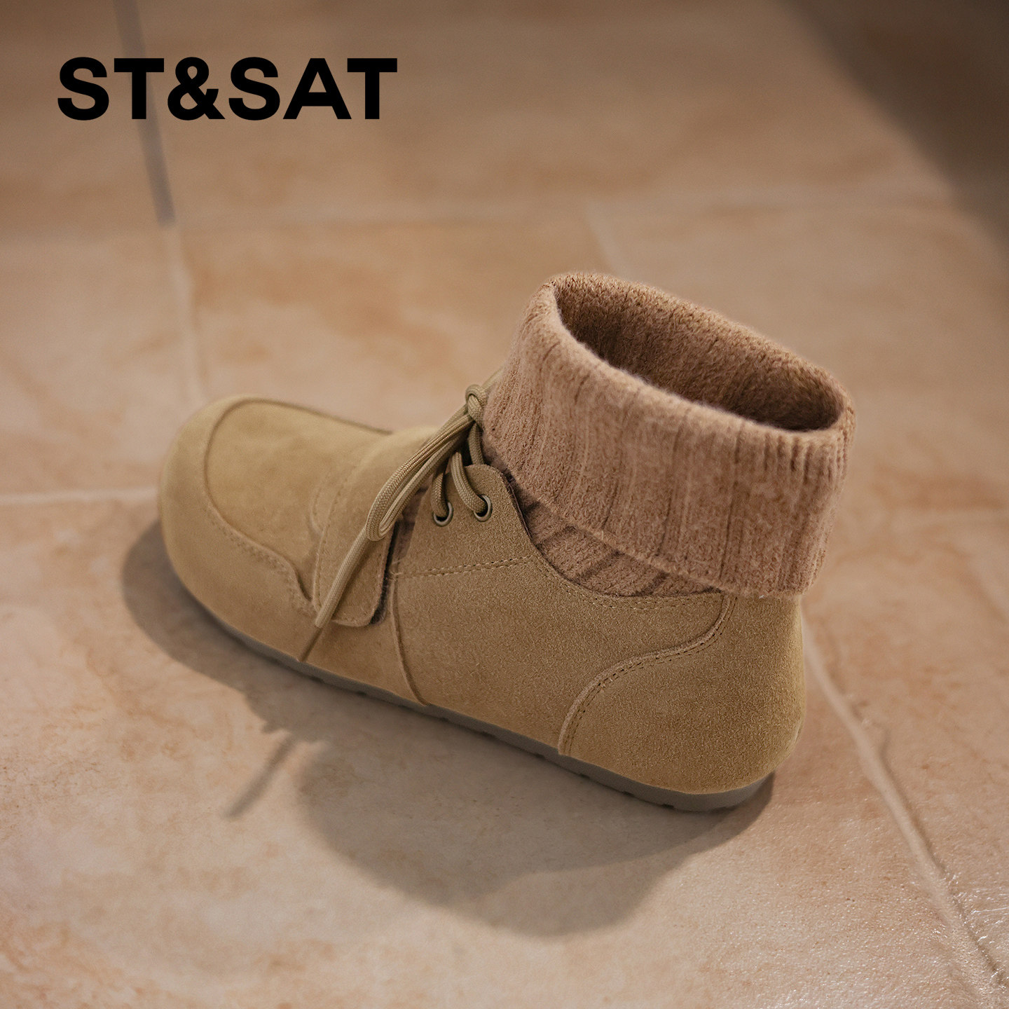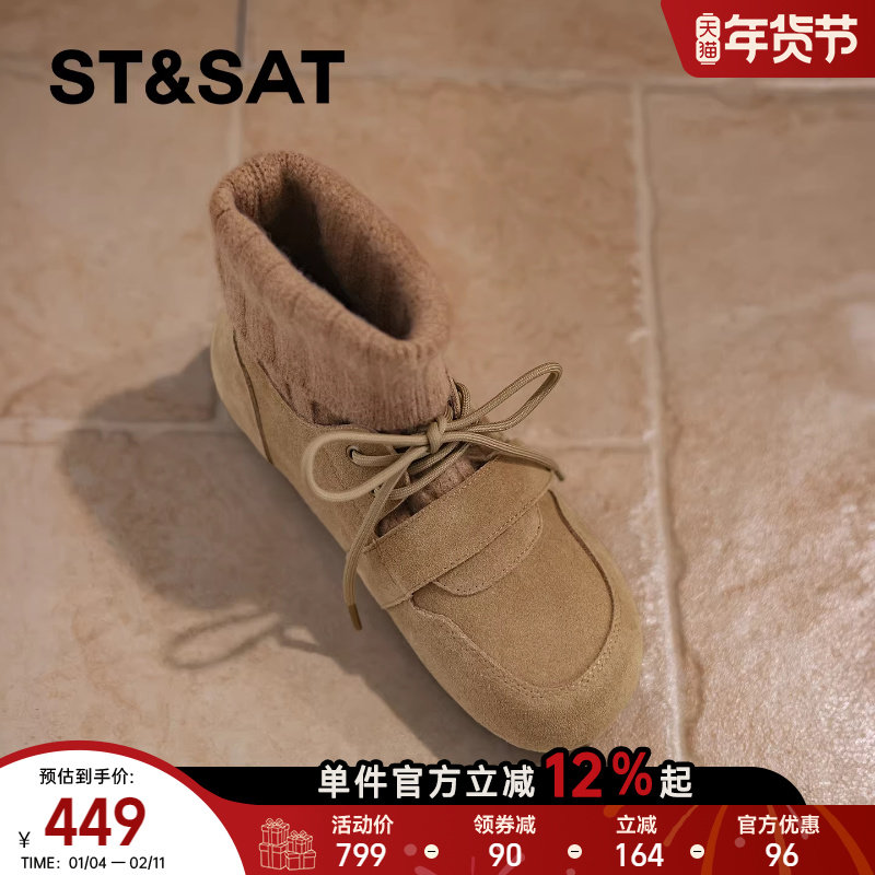 星期六2025秋冬新款系带弹力靴