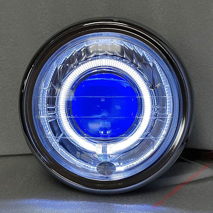 摩托车灯泡配件 7寸圆灯大灯总成 LED 双光透镜 天使眼 恶魔眼