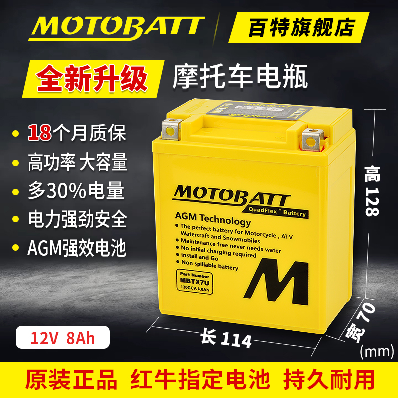 百特摩托车电瓶12V通用本田宝马春风哈雷贝纳利杜卡迪原装大容量