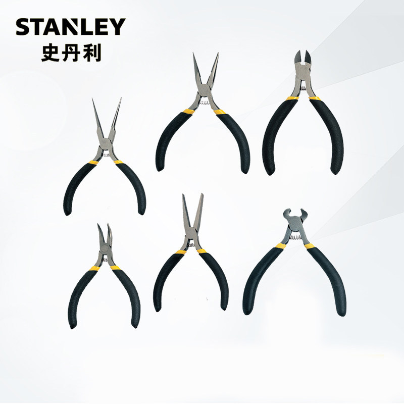 STANLEY/史丹利 黑柄迷你尖嘴钳斜口针嘴钳顶切弯嘴钳家用小钳子