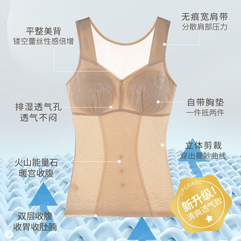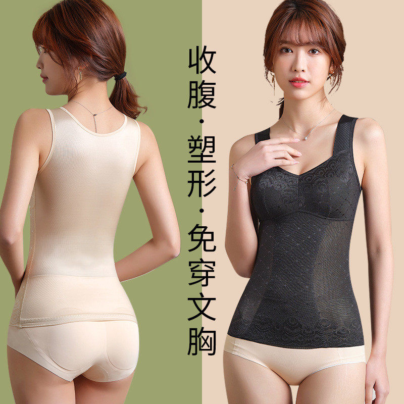 夏季薄款塑身上衣免穿文胸带杯垫产后收腹收胃塑形美体束身衣女