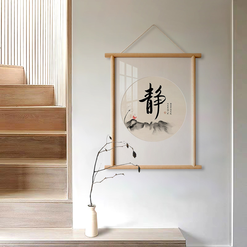 新中式墙饰挂件装饰画禅意心经挂画茶室玄关走廊书法字画荷花墙画