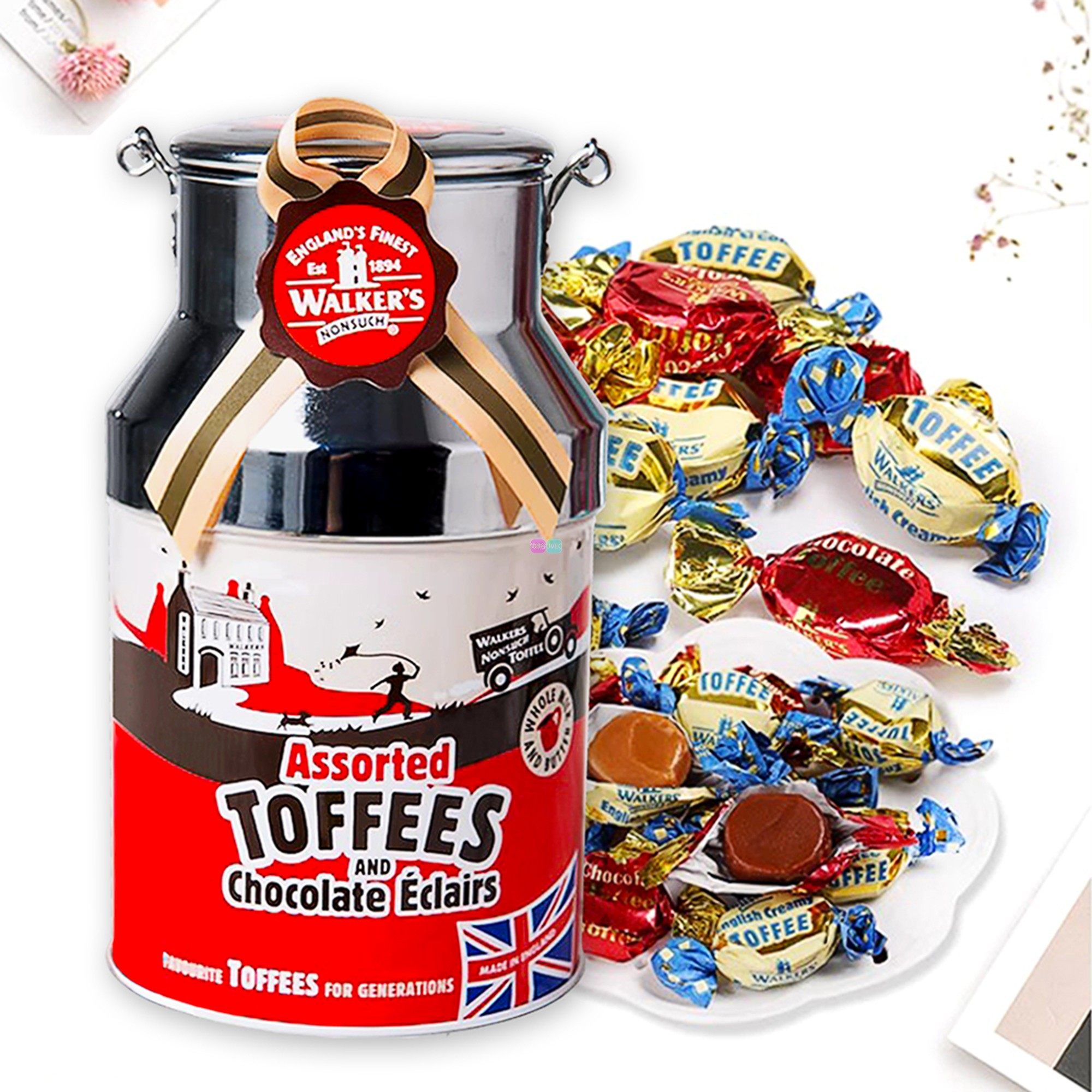 英国进口糖果零食Walkers沃尔克斯什锦太妃糖礼盒装牛奶罐装300g