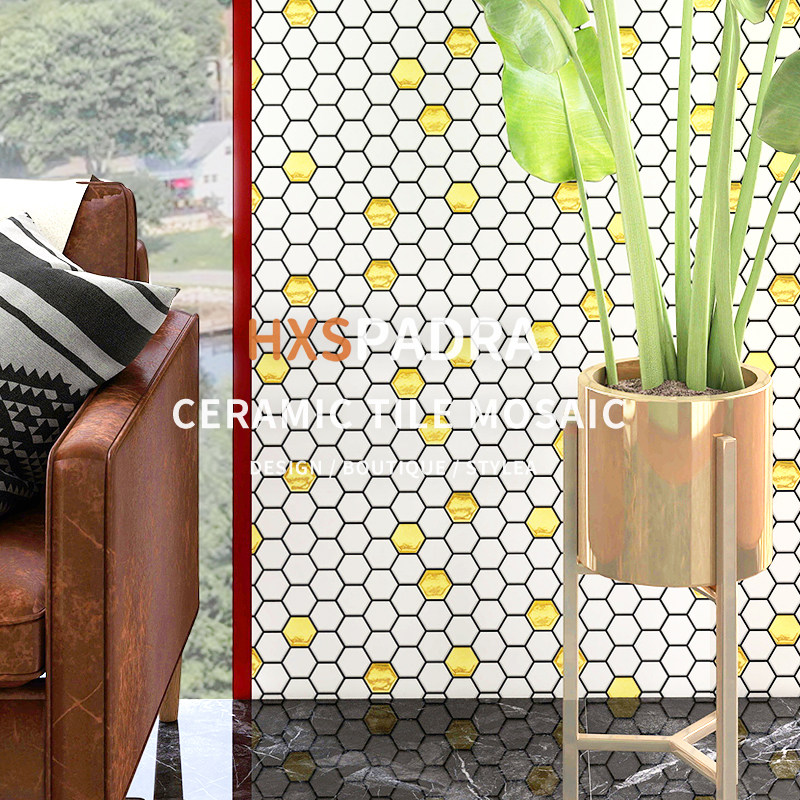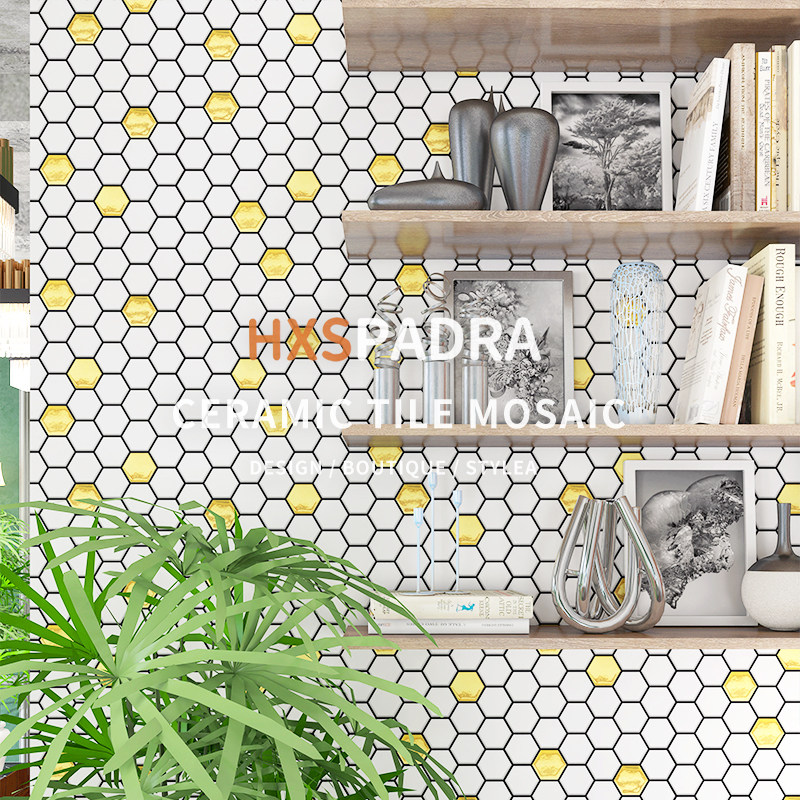 潘多拉轻奢六角金色陶瓷马赛克