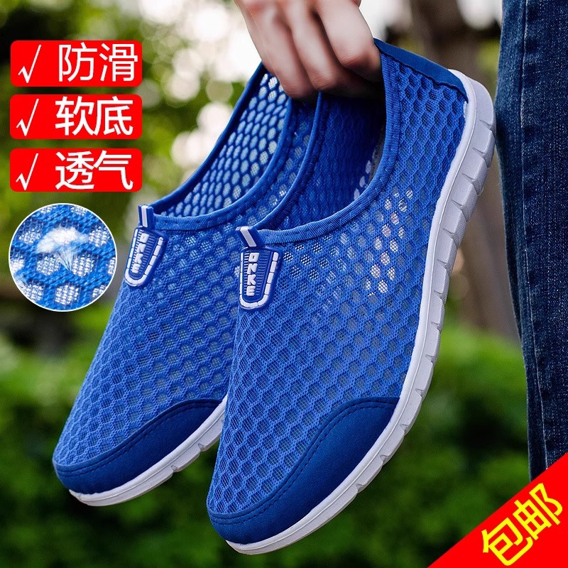 老北京布鞋男款夏季休闲运动情侣网面鞋透气镂空女一脚蹬沙滩凉鞋