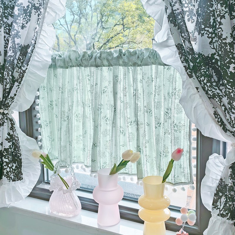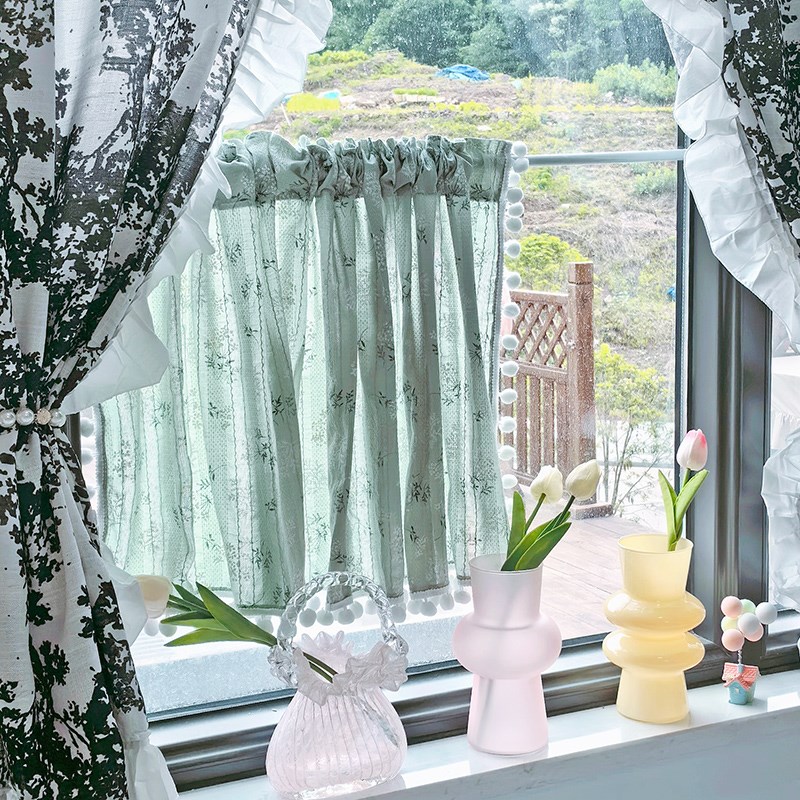 牛油果绿色森系窗帘短款半帘卧室遮光厨房厕所窗户遮挡帘清新风