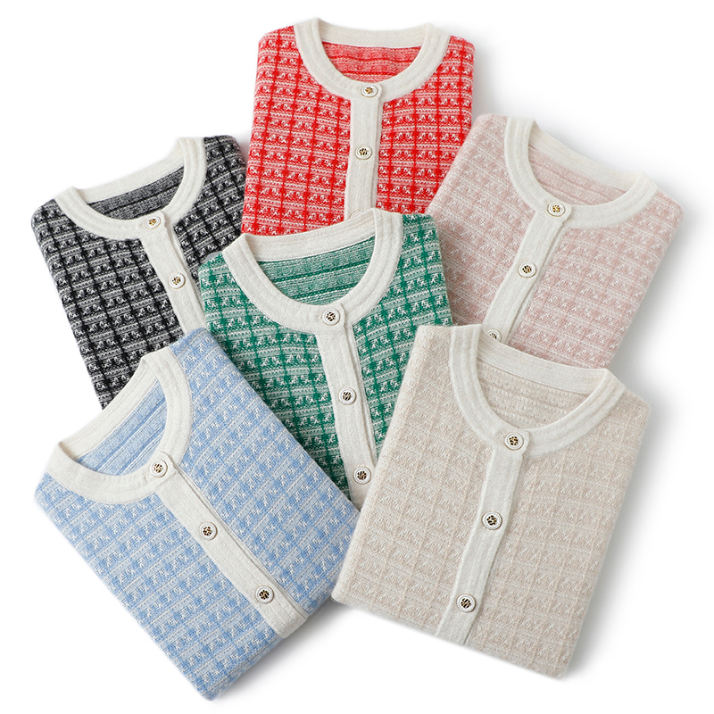 如初的模样!法式香调!加厚撞色100%纯羊绒开衫女小香风针织衫