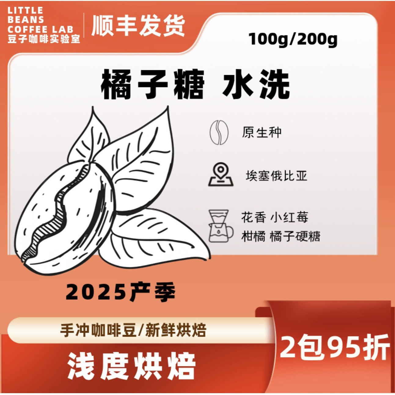豆子咖啡实验室 埃塞俄比亚橘子糖手冲咖啡豆咖啡粉黑咖啡花果香