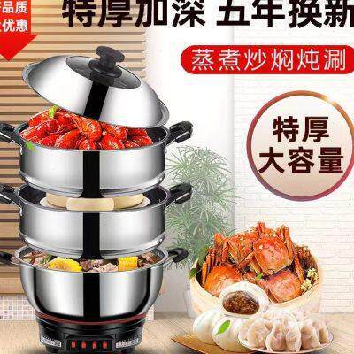 多功能电热锅不锈钢电炒锅家用电热锅电煮锅蒸锅炖锅一体插电炒u.