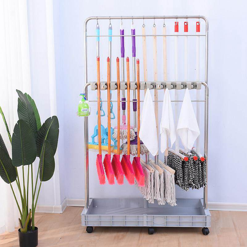 不锈钢可移动拖把挂架落地式扫把墩布置物架子卫生间收纳清洁工具