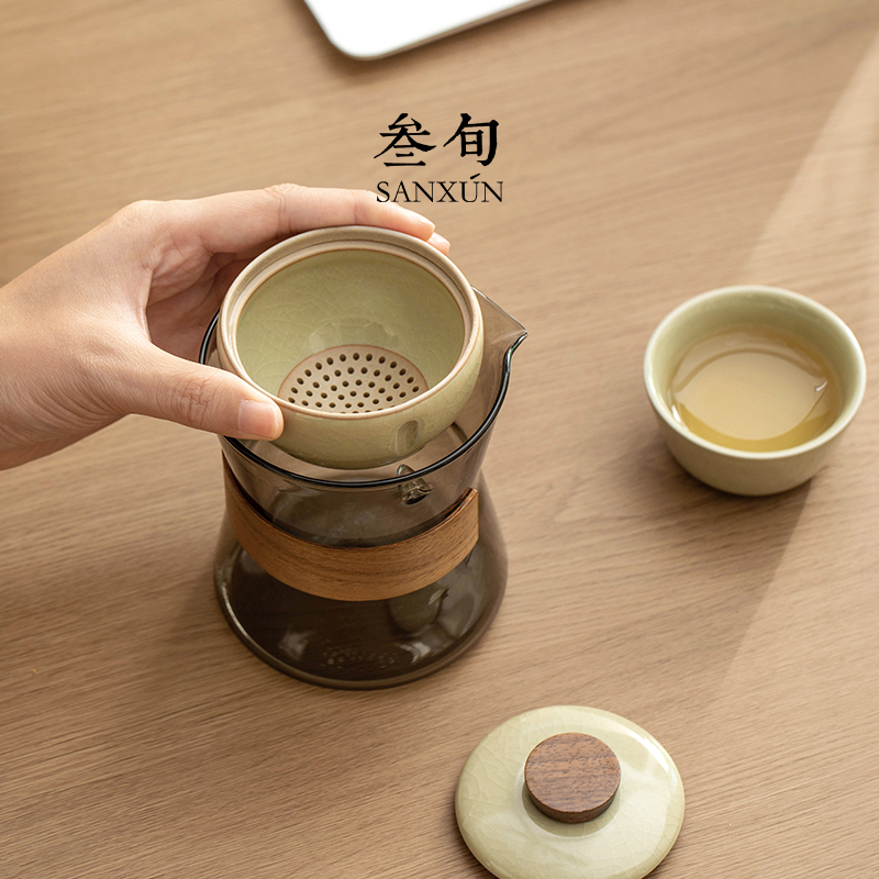 三旬 汝窑小青柑专用泡茶壶高档茶具茶水分离公道杯懒人泡茶神器