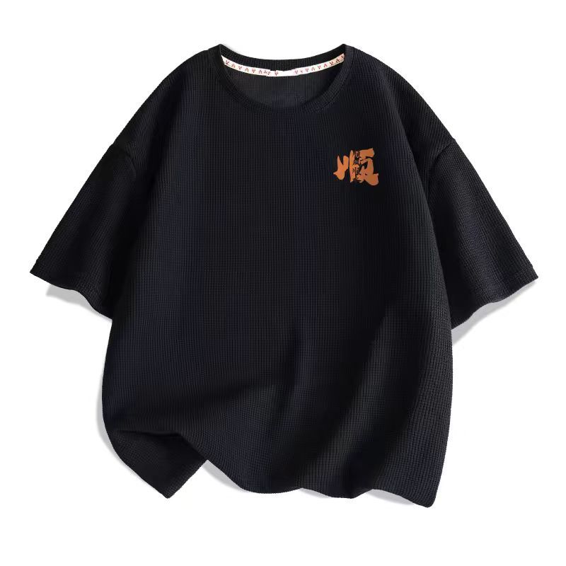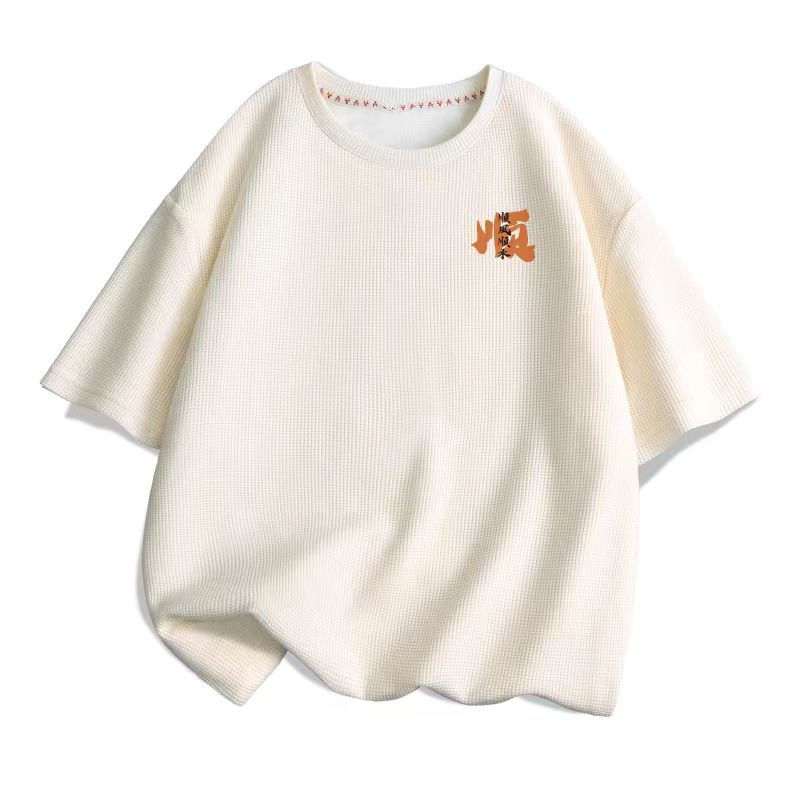 t恤短袖男潮流熊猫印花夏季中国风圆领宽松华夫格上衣港风ins