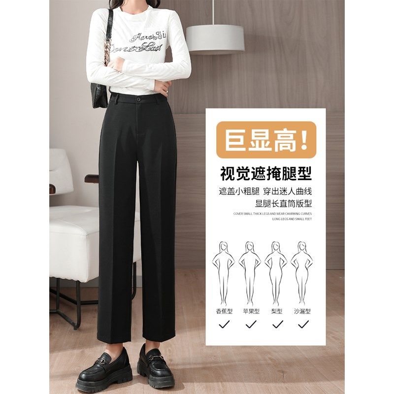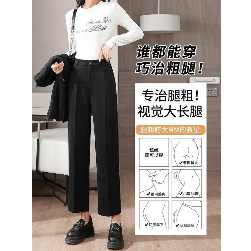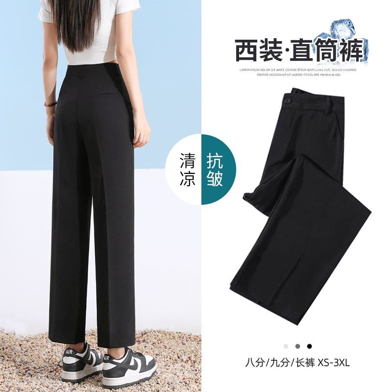 直筒西装裤女夏薄款垂感显瘦大码九分阔腿小个子黑色面试职业西裤
