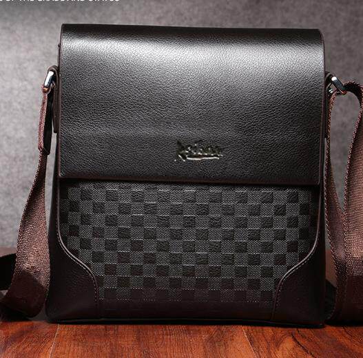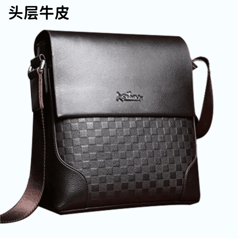真皮男包单肩包斜挎包公文背包纯头层牛皮商务格纹挂包竖男士包包
