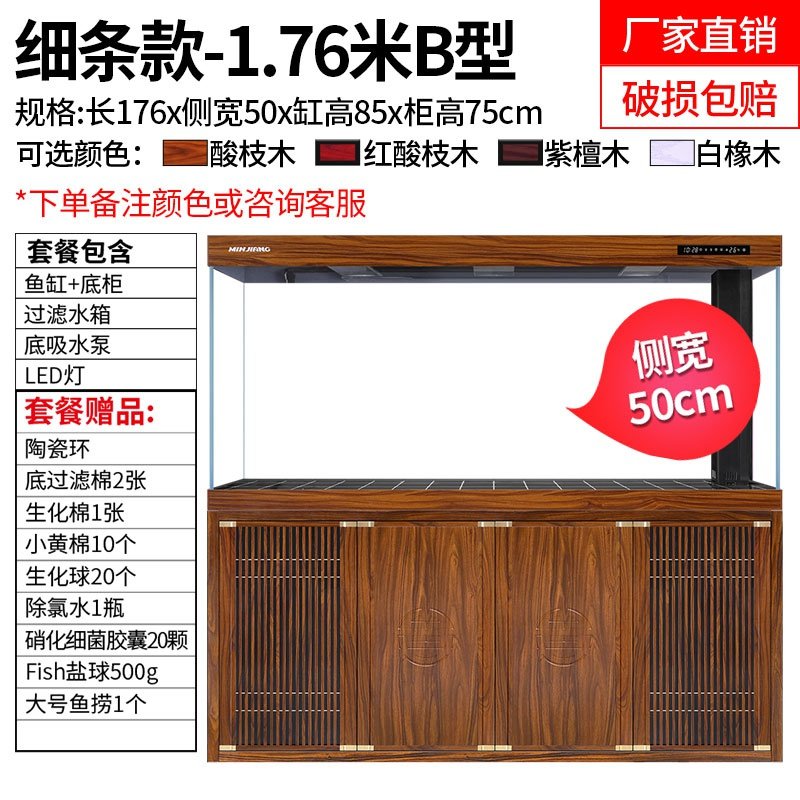新品鱼缸客厅1米大型中式落地家用2E021新款水族箱超白玻璃龙底滤