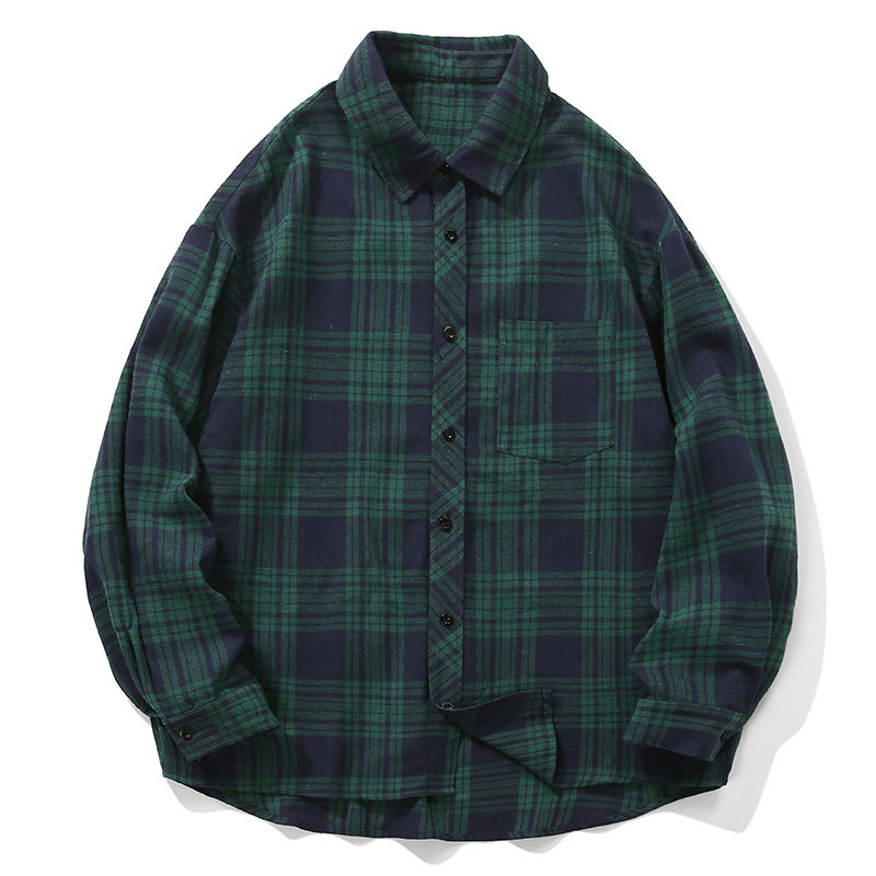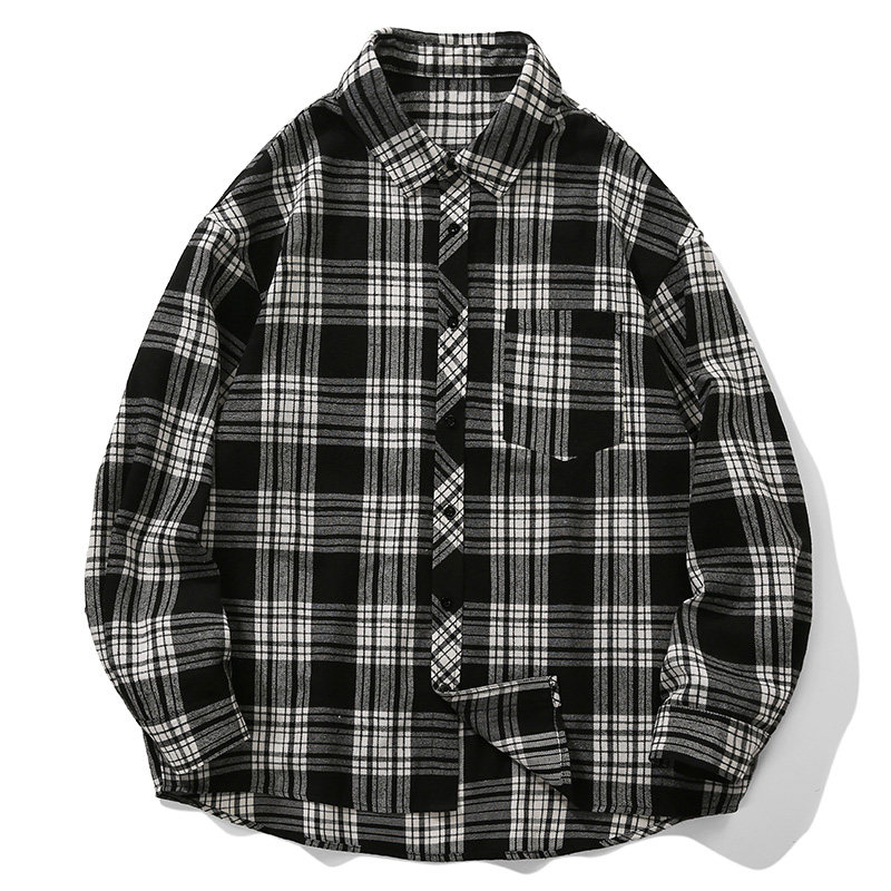 罗蒙长袖衬衫男款春秋季2026新款格子翻领宽松美式潮流休闲上衣男