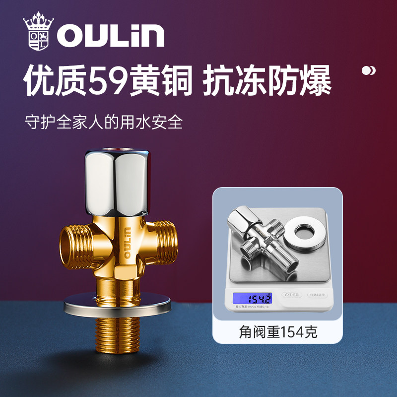 【换购】欧琳全铜三通分水阀一进二出角阀双出水分水器冷热开关阀