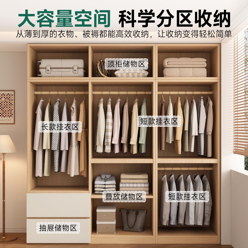 衣柜家用卧室出租房经济型小户型简易全实木原木风储物儿童大衣橱