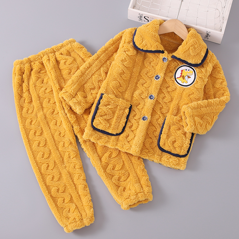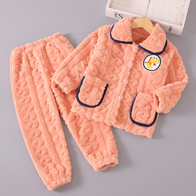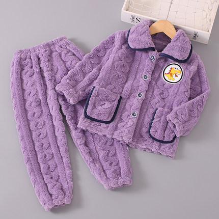 秋冬季儿童珊瑚绒睡衣男童加厚冬款法兰绒女孩家居服女童宝宝套装