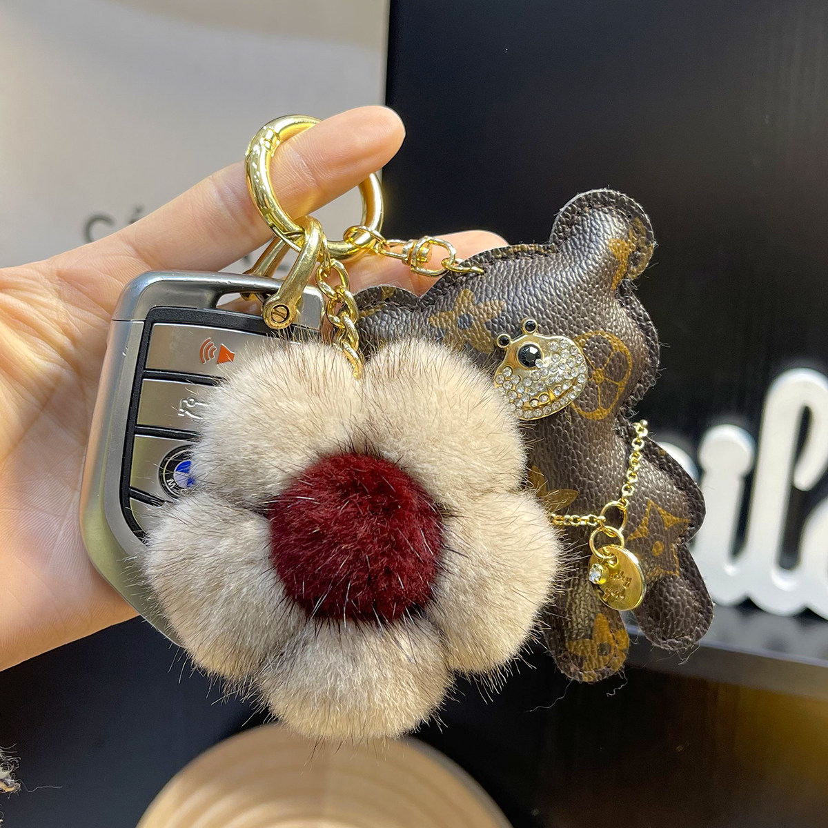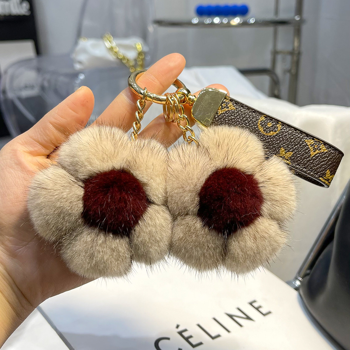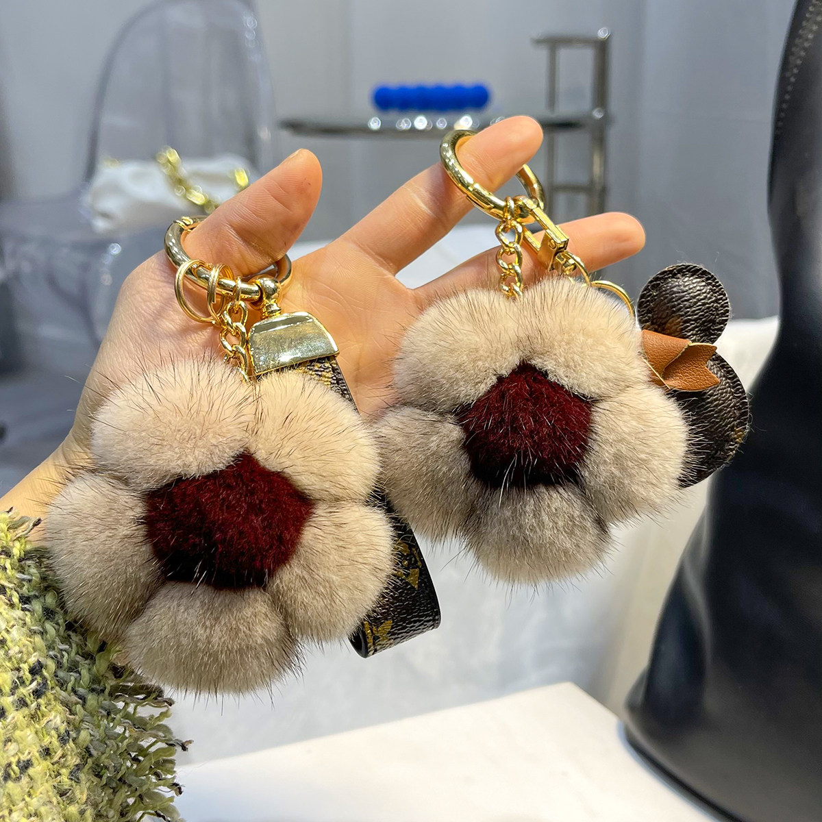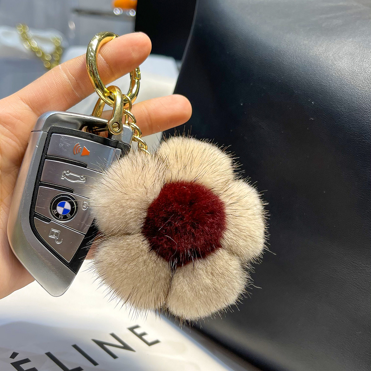 钥匙扣女精致韩国创意简约水貂樱花可爱毛绒网红ins汽车包包挂件