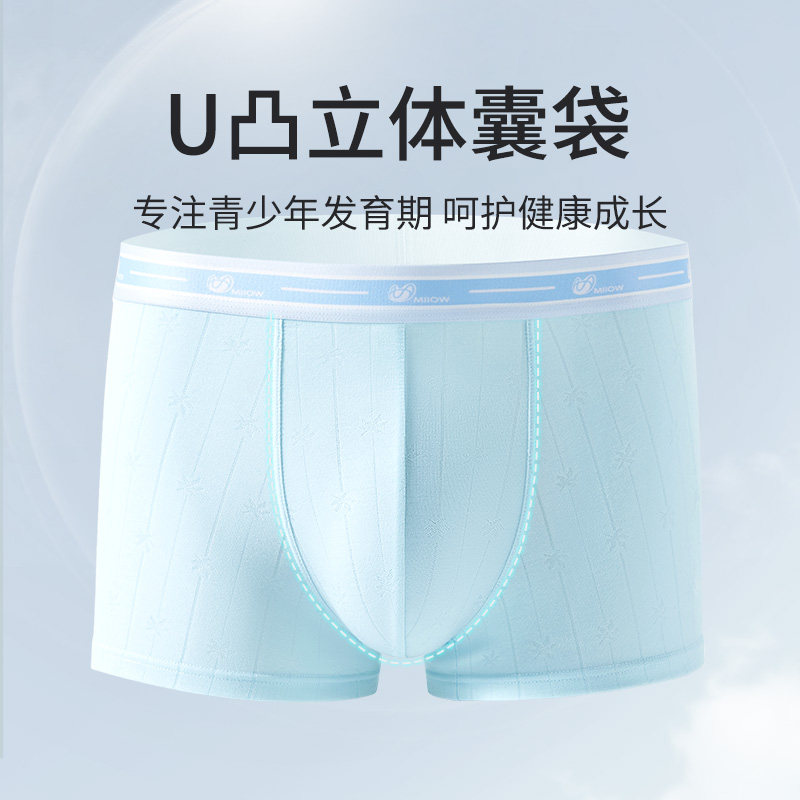 猫人青少年内裤男生发育期初高中学生冰丝四角短裤大码儿童平角裤