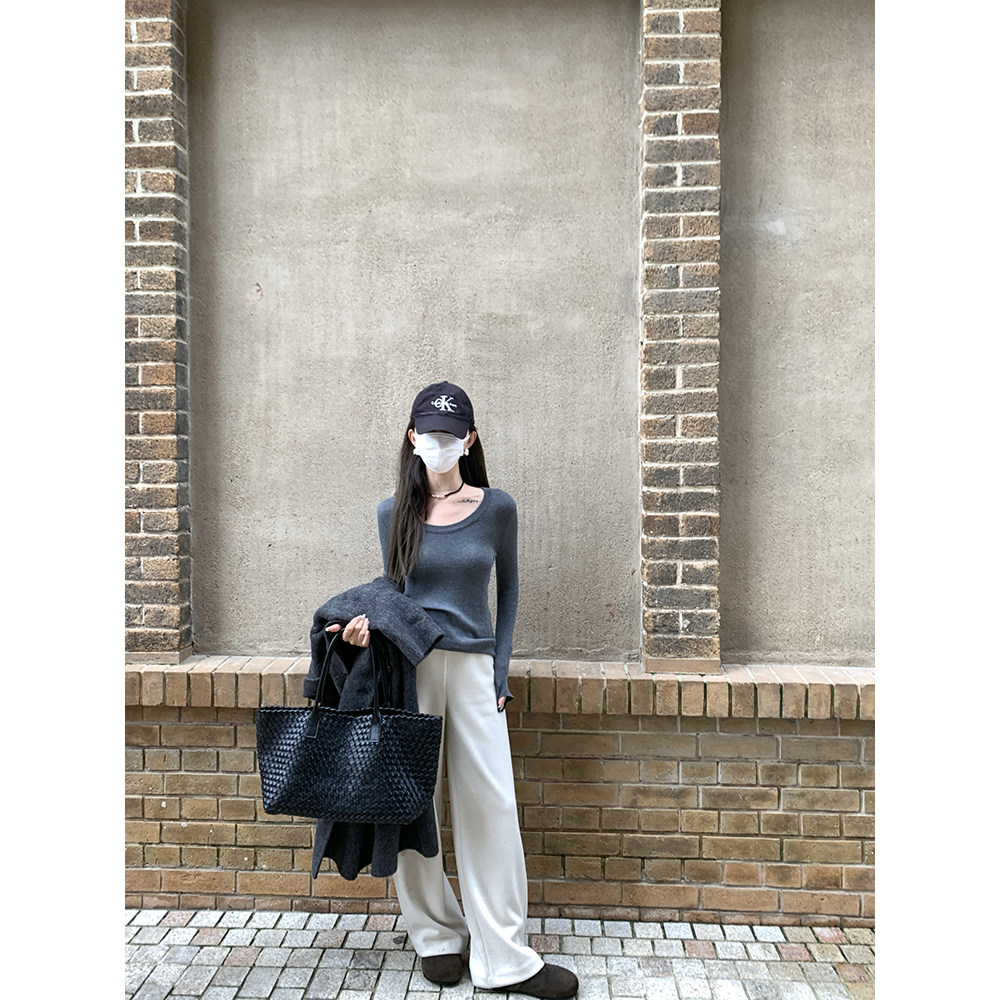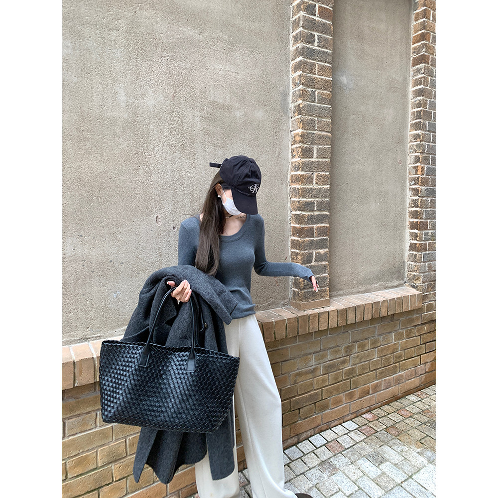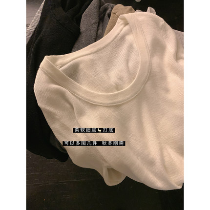 大小姐77柔软细腻绵羊毛混纺慵懒感大领口内搭打底衫